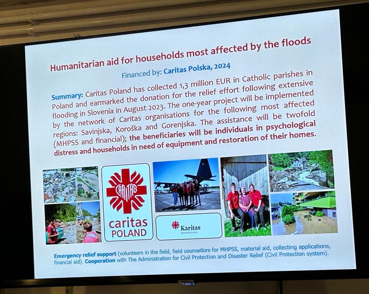 Polska Caritas, poprzez zbiórki funduszy we wszystkich parafiach w Polsce, uzbierała i przekazała Słoweńskiej Karitas 1 milion 300 tysięcy Euro na pomoc dla słoweńskich powodzian. Obecnie wdrażane są programy, które będą finansowane z polskiej pomocy.