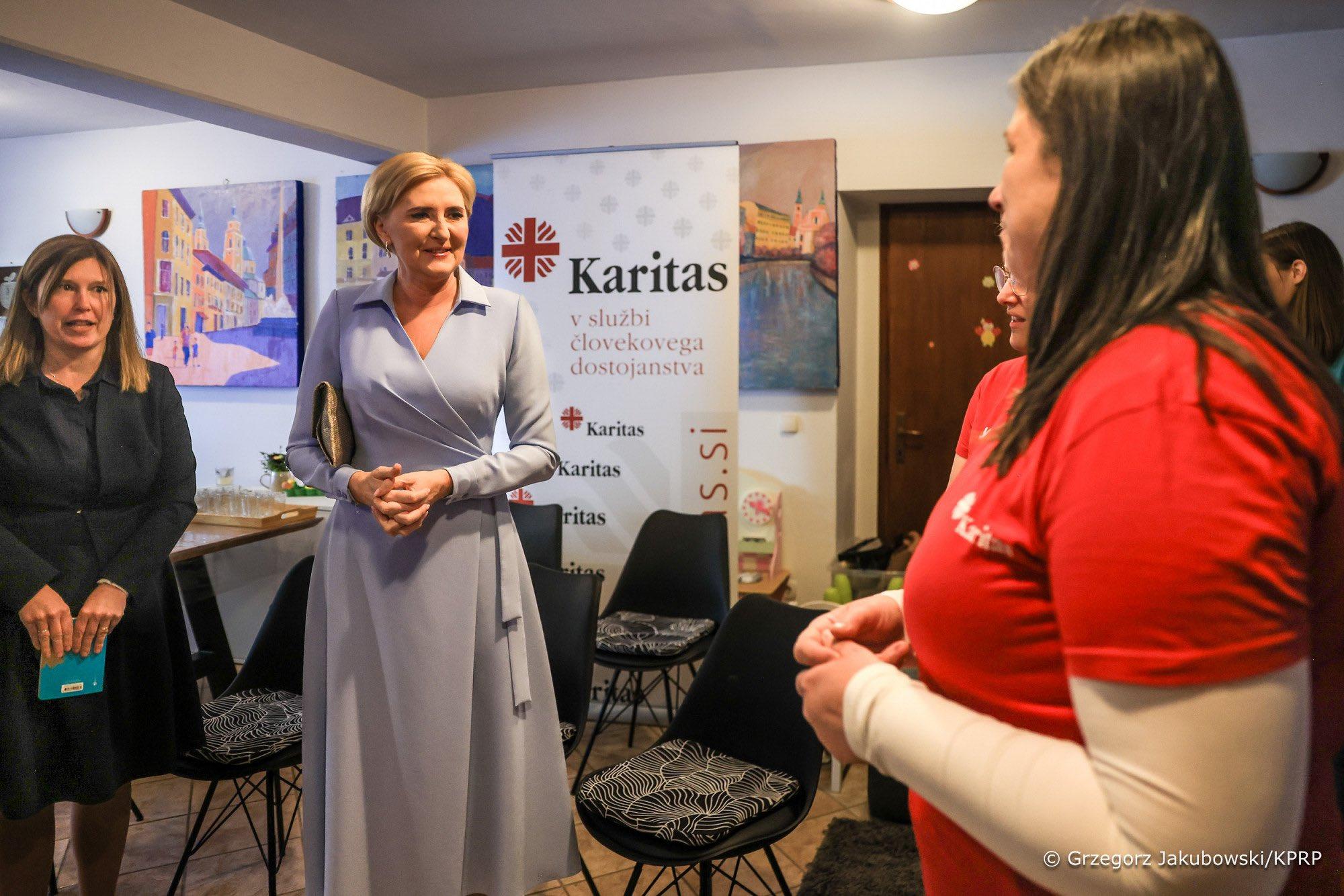 20 marca 2024 r. w ramach programu odrębnego wizyty oficjalnej w Słowenii, Małżonka Prezydenta RP Pani Agata Kornhauser-Duda odwiedziła Dom Samotnej Matki Karitas w Lublanie, gdzie spotkała się z podopiecznymi Domu oraz z przedstawicielami Karitas Słowenia, która prowadzi placówkę. Gospodarze przedstawili Pierwszej Damie historię oraz działalność słoweńskiej Karitas, a także podziękowali Polsce za ogromną pomoc polskiej Caritas w czasie ubiegłorocznych powodzi, jakie dotknęły Słowenię.