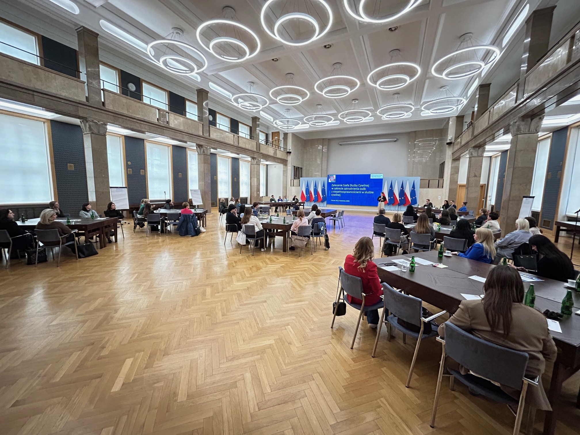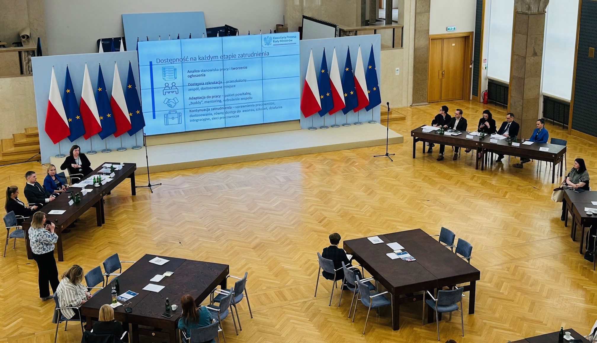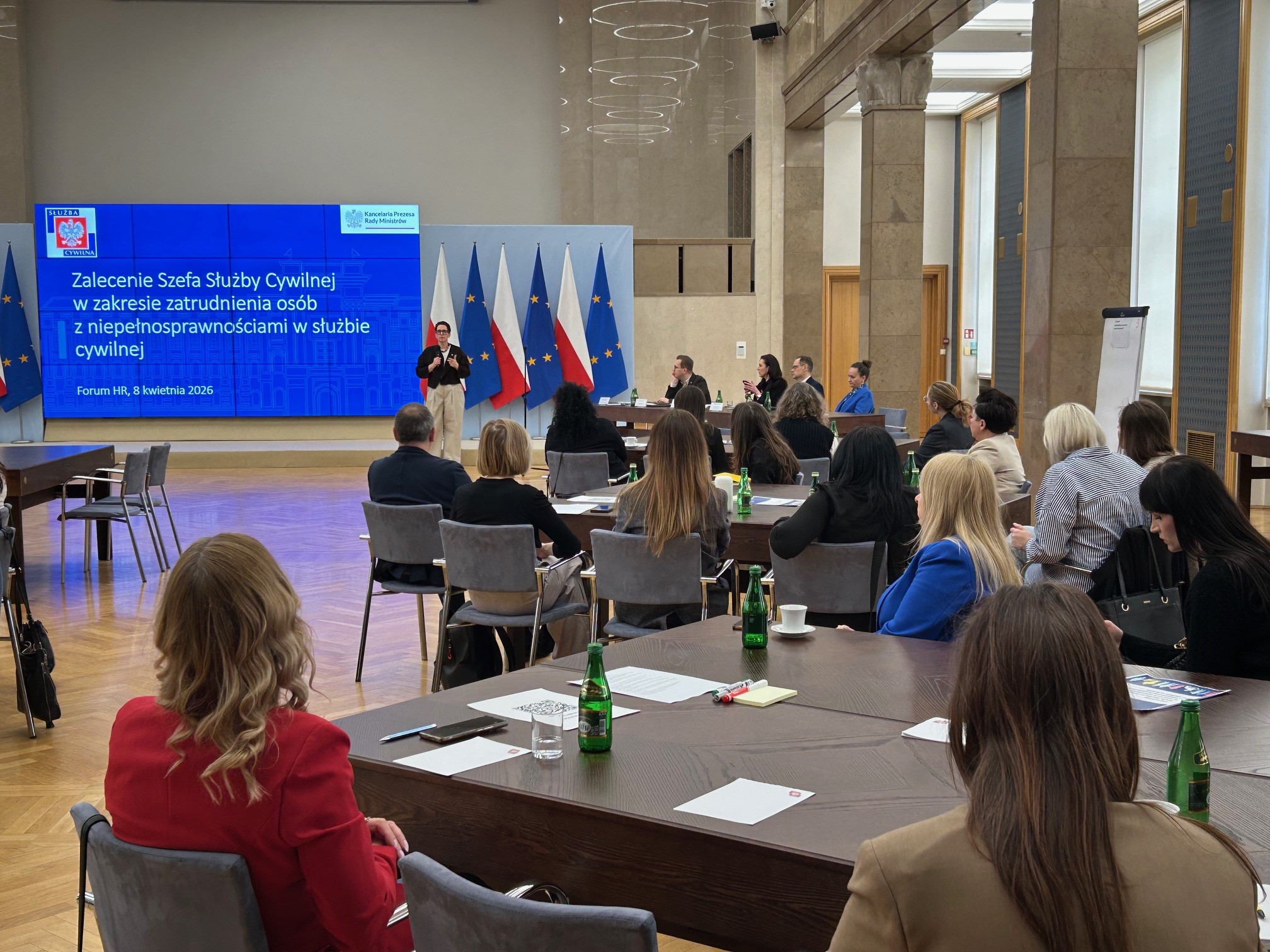W Kancelarii Prezesa Rady Ministrów odbyło się czternaste spotkanie praktyków z komórek kadrowych ministerstw, urzędów centralnych, urzędów wojewódzkich i Kancelarii Prezesa Rady Ministrów. Tym razem rozmawialiśmy o Zaleceniu Szefa Służby Cywilnej w sprawie zatrudnienia osób z niepełnosprawnościami. Spotkanie zorganizowaliśmy, aby zwrócić uwagę na konieczność stałego wzrostu świadomości, wiedzy i umiejętności pracowników i pracowniczek w zakresie dostępności i współpracy z osobami z niepełnosprawnościami.