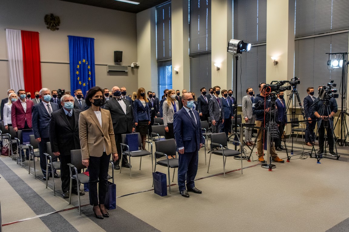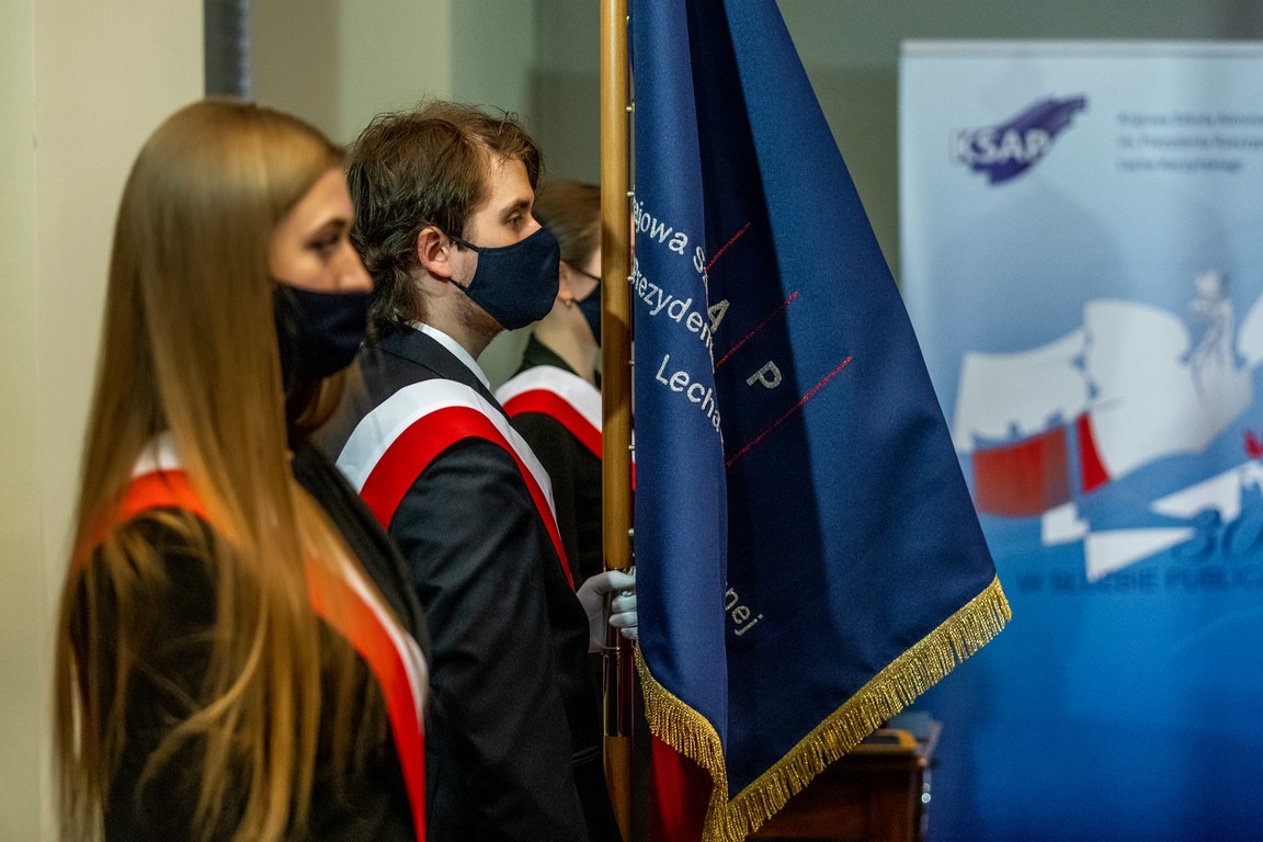 Uroczystość odbyła się w formie hybrydowej – stacjonarnie, w budynku Krajowej Szkoły przy ul. Wawelskiej w Warszawie oraz on-line.