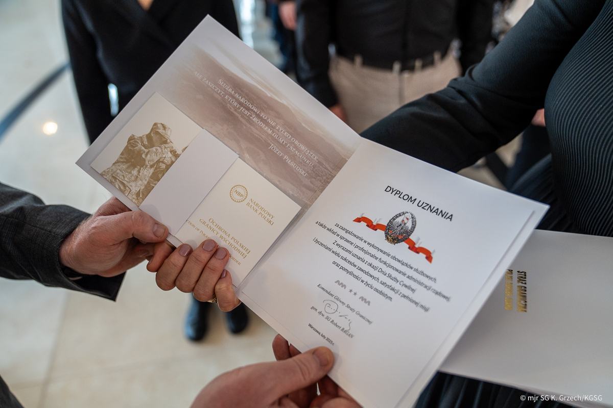 W środę 26 lutego w Komendzie Głównej Straży Granicznej odbyła się uroczystość z okazji Dnia Służby Cywilnej. Obok funkcjonariuszy Straży Granicznej w wydarzeniu uczestniczyli wspierający ich działania członkowie i członkinie korpusu służby cywilnej. Efekty ich pracy docenili podczas swoich przemówień, gospodarz uroczystości Komendant Główny SG gen. dyw. SG Robert Bagan, szefowa służby cywilnej Anita Noskowska-Piątkowska oraz podsekretarz stanu w MSWiA Maciej Duszczyk.