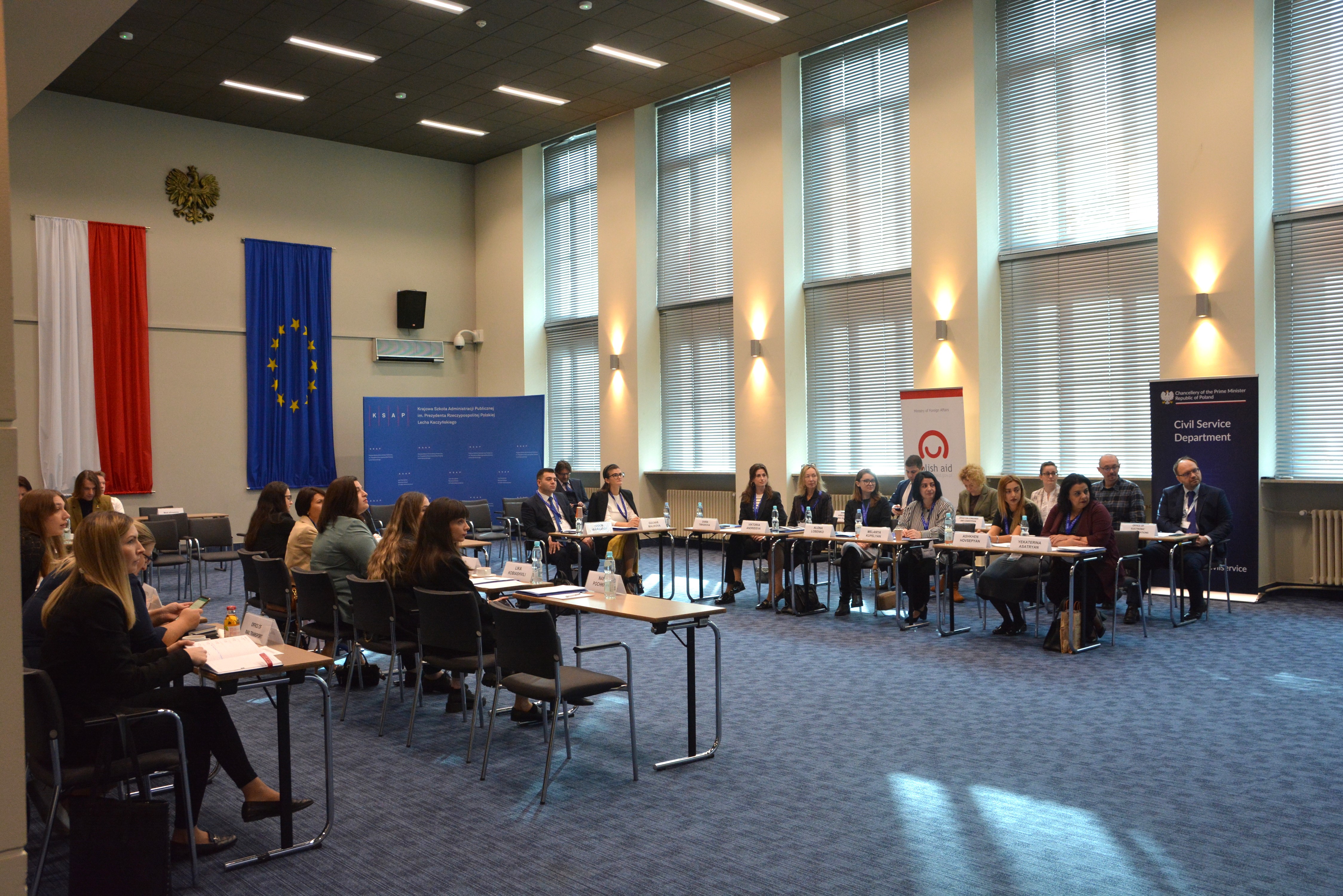 Urzędnicy z krajów PW wzięli udział w szkoleniu na temat polskiego systemu służby cywilnej. Pracownicy Departamentu Służby Cywilnej KPRM przedstawili polskie rozwiązania i doświadczenia dotyczące m.in. podstaw prawnych polskiego systemu służby cywilnej, jego organizacji, zakresu, struktury zatrudnienia, rekrutacji, systemu wynagradzania i budżetu, etyki, szkolenia i rozwoju oraz standardów zarządzania zasobami ludzkimi. Goście podzielili się informacjami nt. systemów służby cywilnej w ich krajach.
