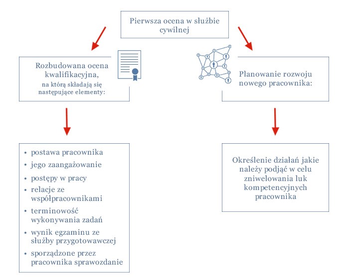 Ustawa o służbie cywilnej wprowadza zasadę, że pracownik zatrudniony po raz pierwszy w służbie cywilnej podlega przygotowaniu do pracy (służba przygotowawcza) oraz weryfikacji i ocenie jego kwalifikacji i przydatności zawodowej (pierwsza ocena w służbie cywilnej).