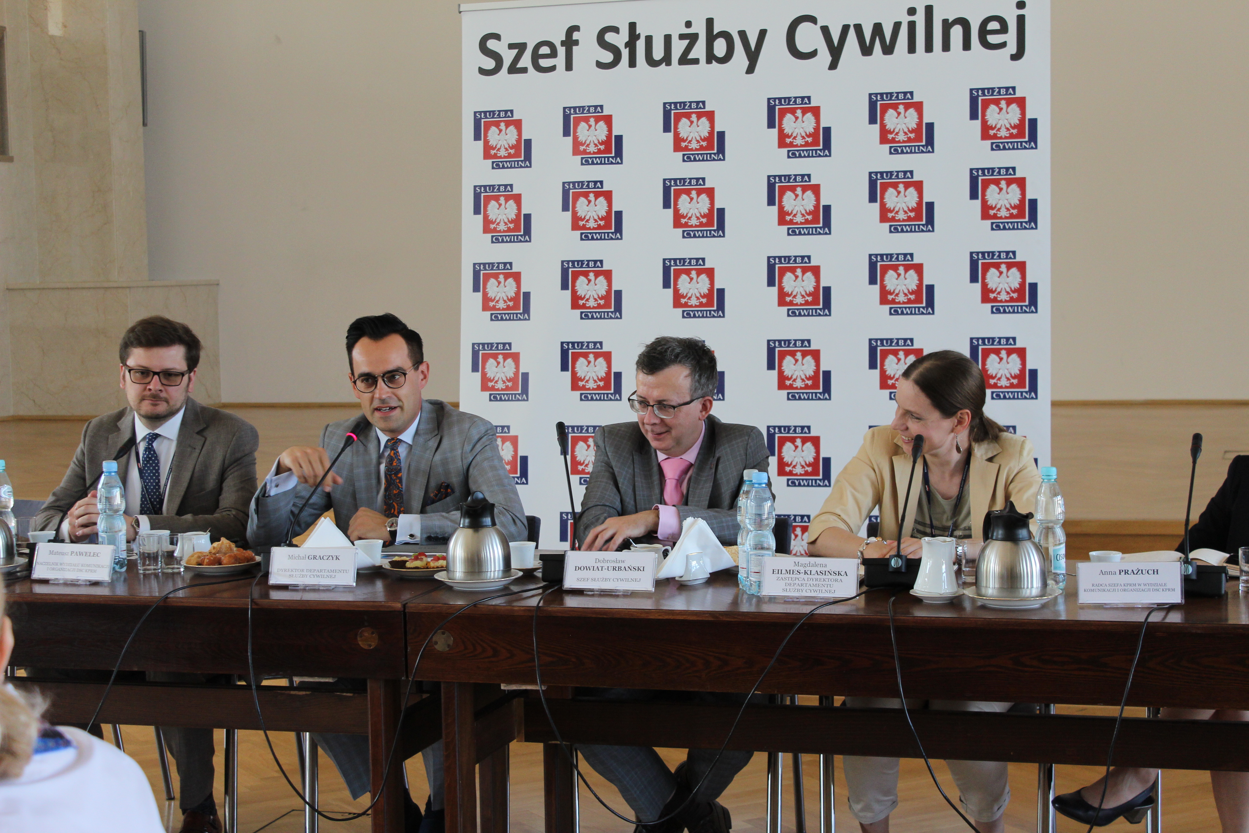 Pracownicy Departamentu Służby Cywilnej KPRM przedstawili członkom Zespołu ideę prostego języka oraz opowiedzieli o początkach jego wdrażania w służbie cywilnej. Poinformowali też o planach Szefa Służby Cywilnej, w tym o projektach współfinansowanych ze środków europejskich. W ramach tych projektów DSC KPRM zorganizuje szkolenia dla 900 członków korpusu służby cywilnej, którzy projektują serwisy internetowe i redagują komunikaty internetowe zgodnie z kryteriami dostępności.