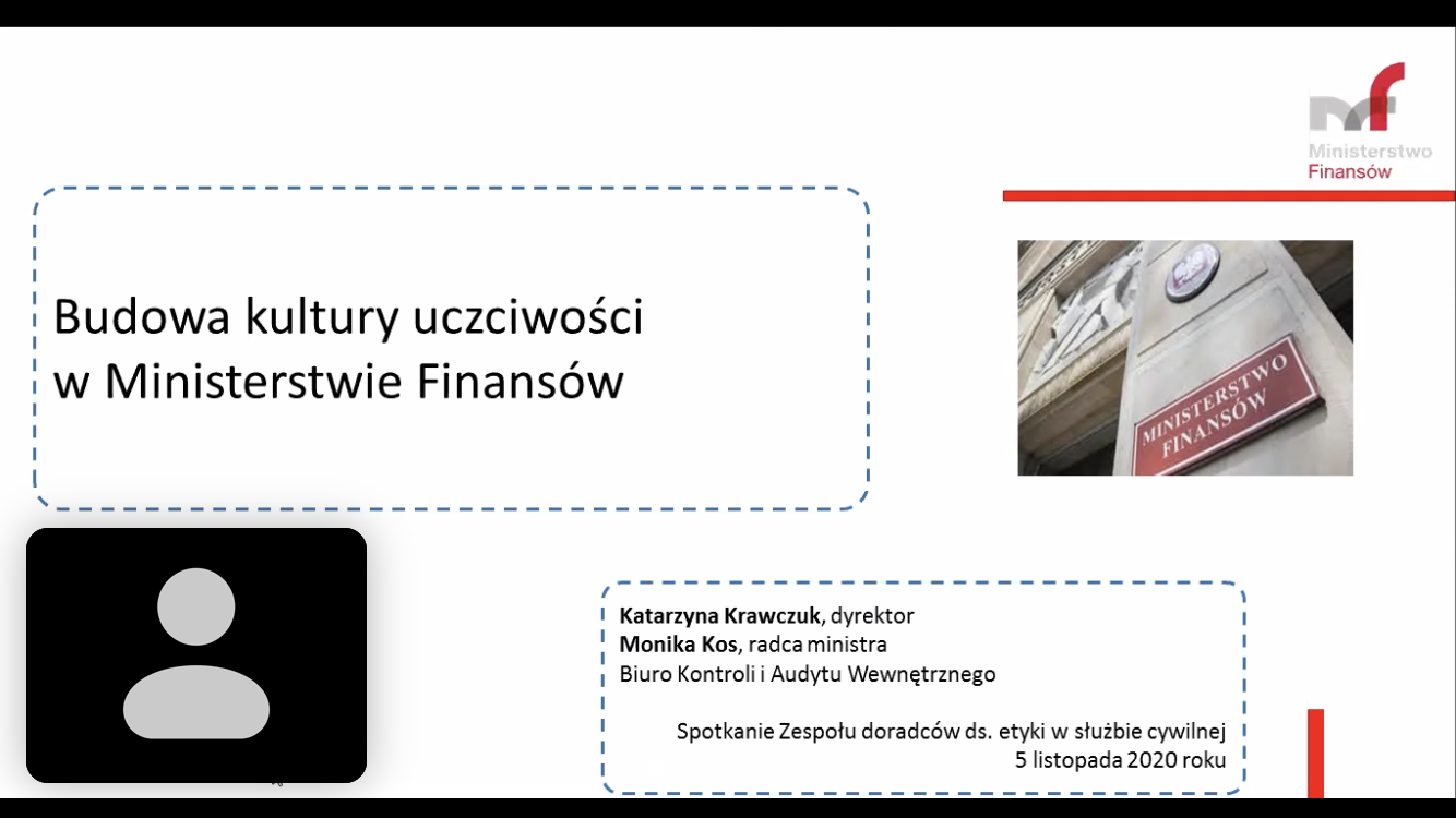 5 listopada 2020 r. odbyło się siódme spotkanie zespołu doradców ds. etyki. Było ono okazją do wymiany dobrych praktyk oraz omówienia stanu kultury uczciwości w służbie cywilnej. Ze względów bezpieczeństwa – trwającą pandemię COVID-19 – spotkanie odbyło się w formacie online.