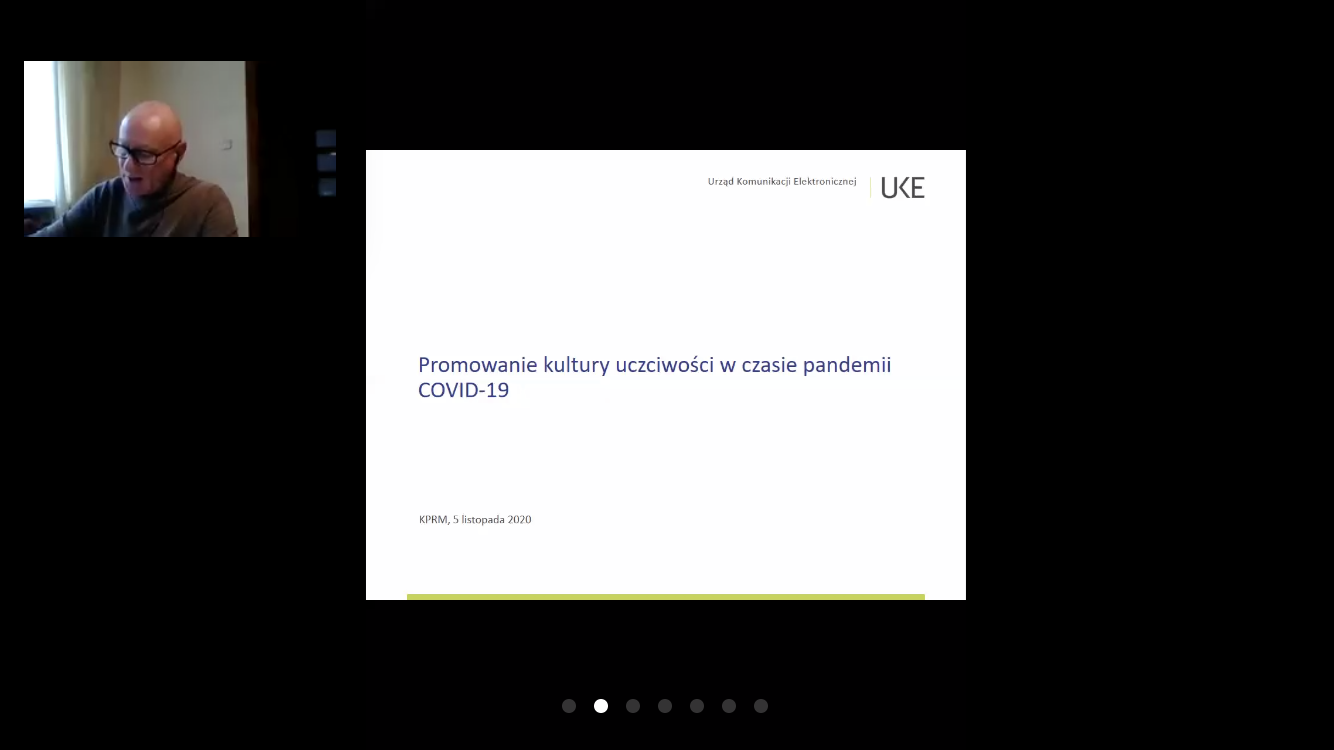 - pełnomocnik ds. etyki w Urzędzie Komunikacji Elektronicznej Zbigniew Kołodziej omówił działania UKE, ukierunkowane na zwiększania świadomości etycznej członków korpusu w dobie kryzysu COVID-19.