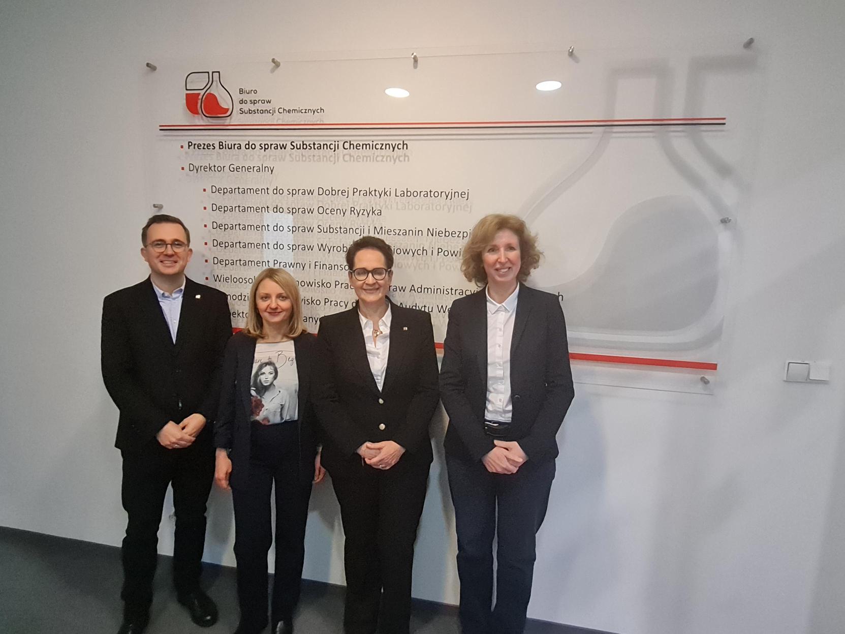 Minister Anita Noskowska-Piątkowska rozmawiała z kadrą kierowniczą urzędu – prezesem Biura do spraw Substancji Chemicznych Agnieszką Dudrą oraz dyrektor generalną Biura Anną Lewandowską.