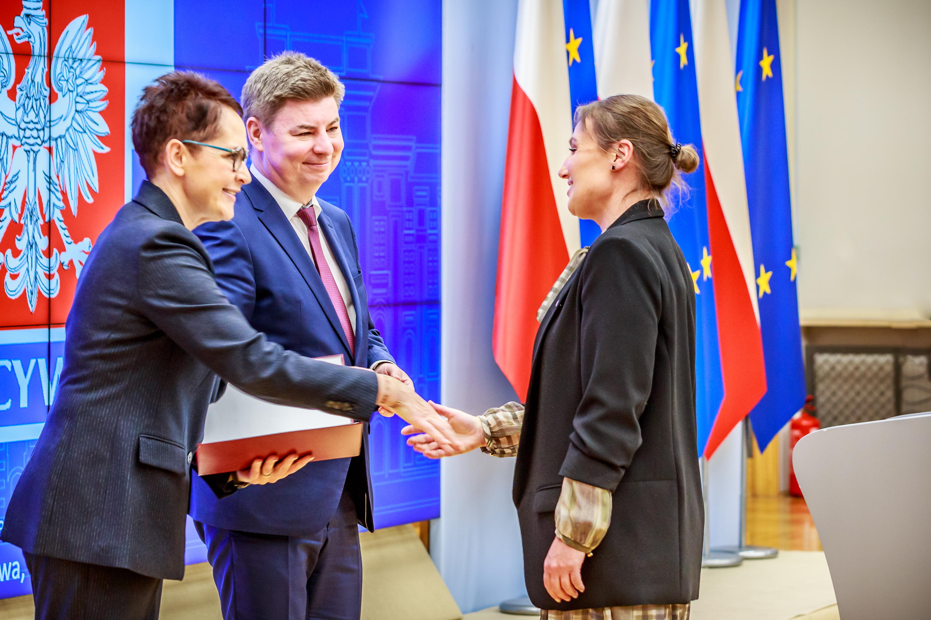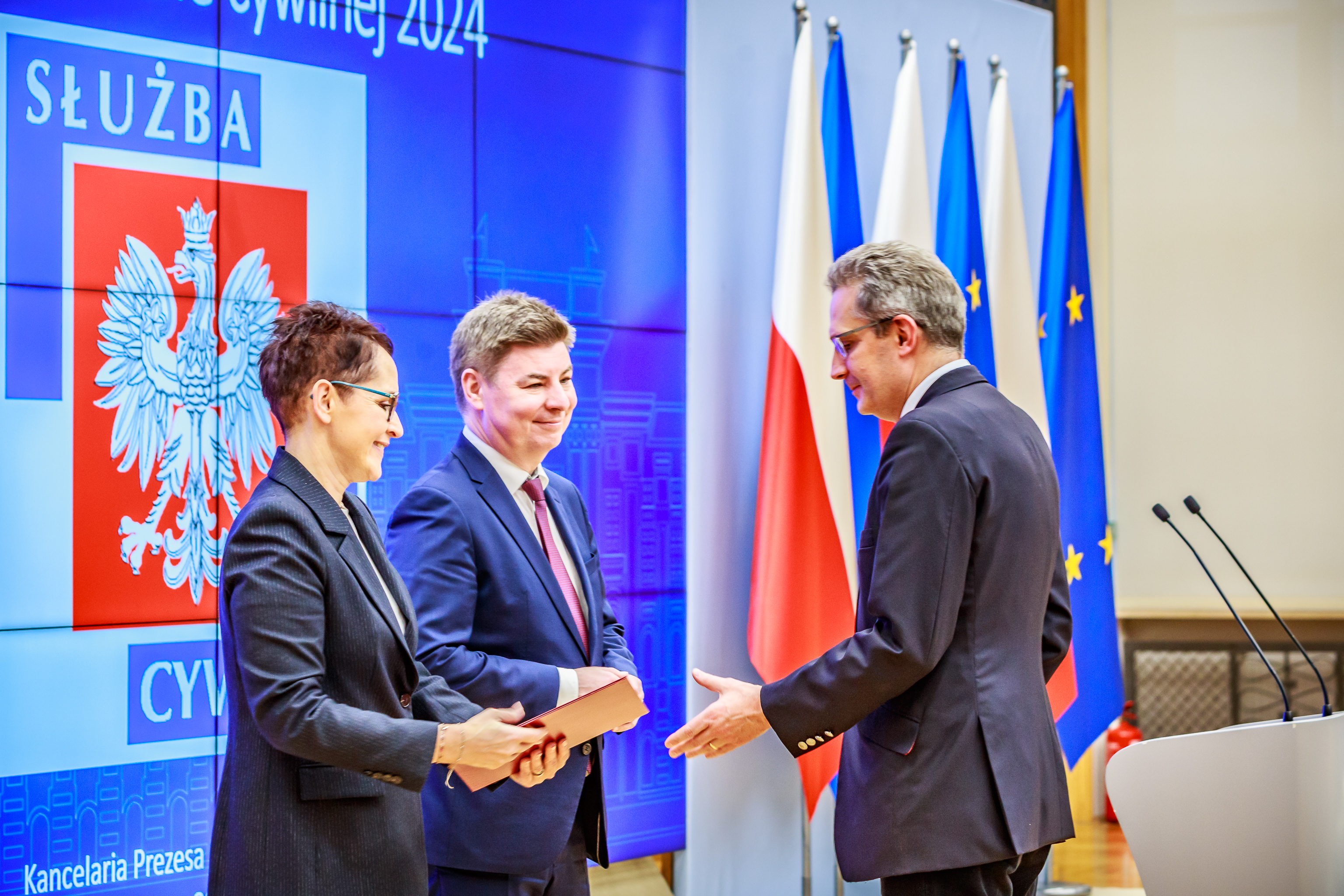 Następnie wspólnie z szefową służby cywilnej Anitą Noskowską-Piątkowską wręczyli akty mianowania 26 nowym urzędnikom i urzędniczkom – najlepszym absolwentom Krajowej Szkoły Administracji Publicznej im. Prezydenta RP Lecha Kaczyńskiego oraz uczestnikom postępowania kwalifikacyjnego w służbie cywilnej z najlepszymi wynikami.