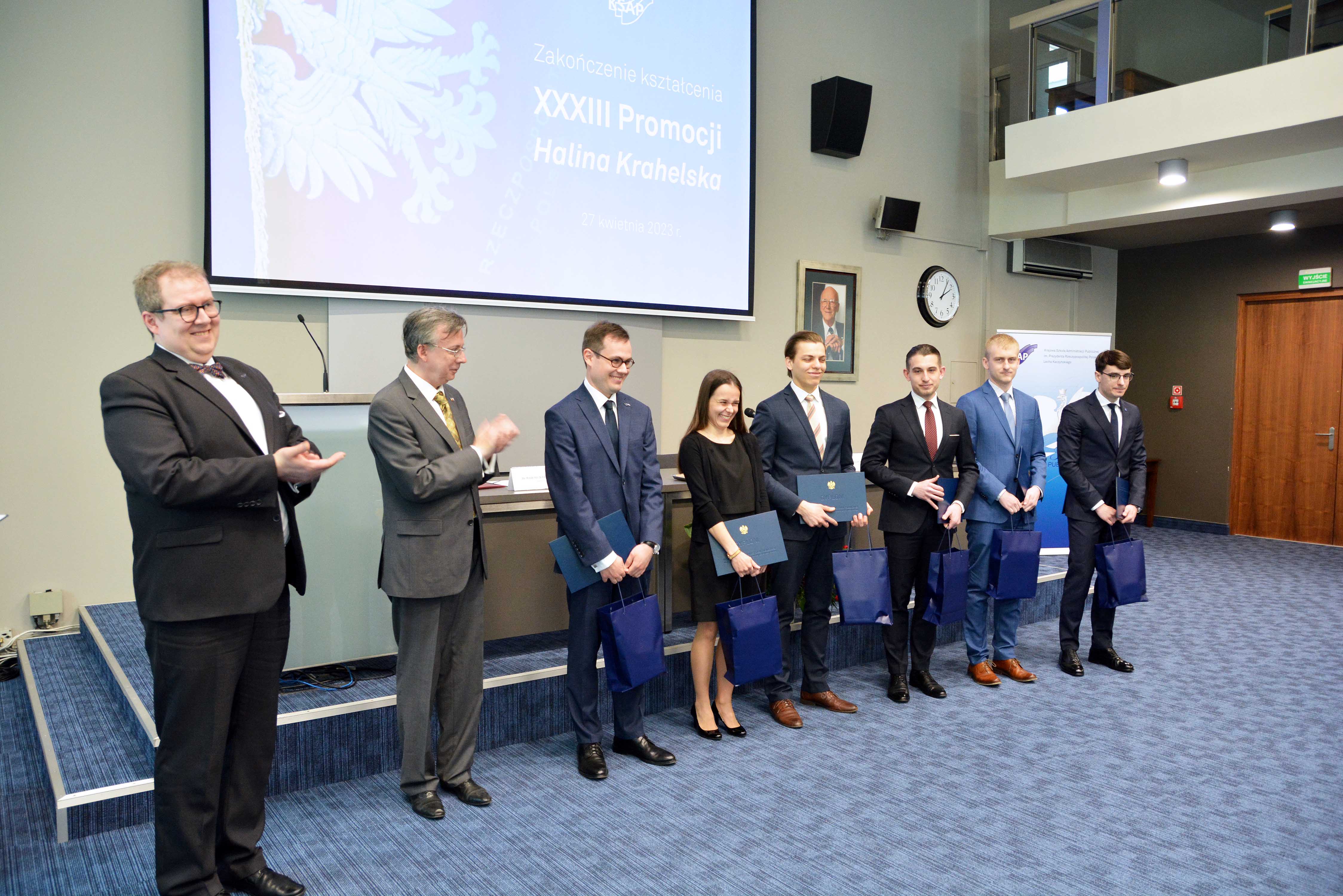 W wydarzeniu wziął także udział przewodniczący Rady Służby Publicznej Zdzisław Sipiera oraz przedstawiciel Rady KSAP Marek Stojanowski. Listy gratulacyjne dla słuchaczy XXXIII promocji KSAP przesłali m. in. minister edukacji i nauki prof. Przemysław Czarnek oraz prezes Zakładu Ubezpieczeń Społecznych prof. Gertruda Uścińska.