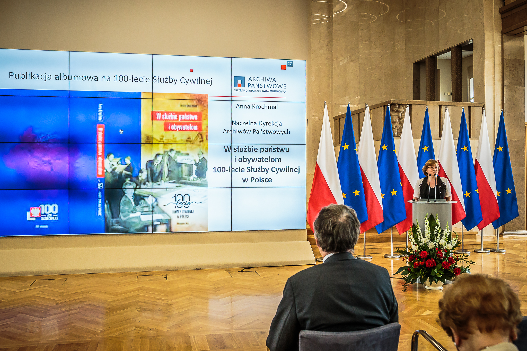 Jednym z najważniejszych działań podjętych dla upamiętnienia stulecia polskiej służby cywilnej było wydanie okolicznościowego albumu. Dzięki szerokiej kwerendzie w zasobach Archiwów Państwowych wybrano bogaty materiał ilustracyjny (fotografie, mapy, wykresy itp.), na podstawie którego powstał album zatytułowany „W służbie państwu i obywatelom. 100-lecie służby cywilnej w Polsce”. Publikację tę zaprezentowała uczestnikom konferencji autorka – dr hab. Anna Krochmal z Naczelnej Dyrekcji Archiwów Państwowych.