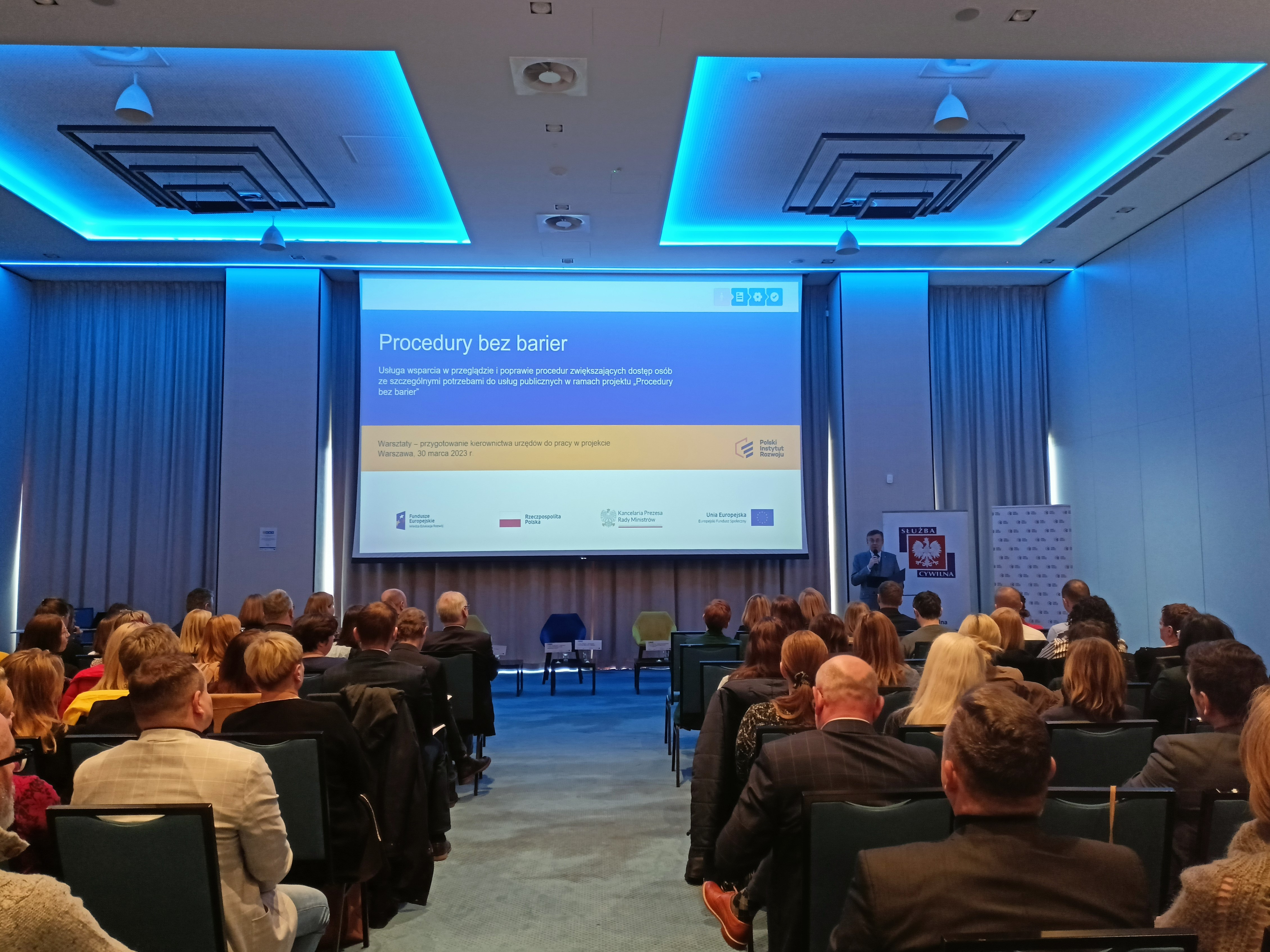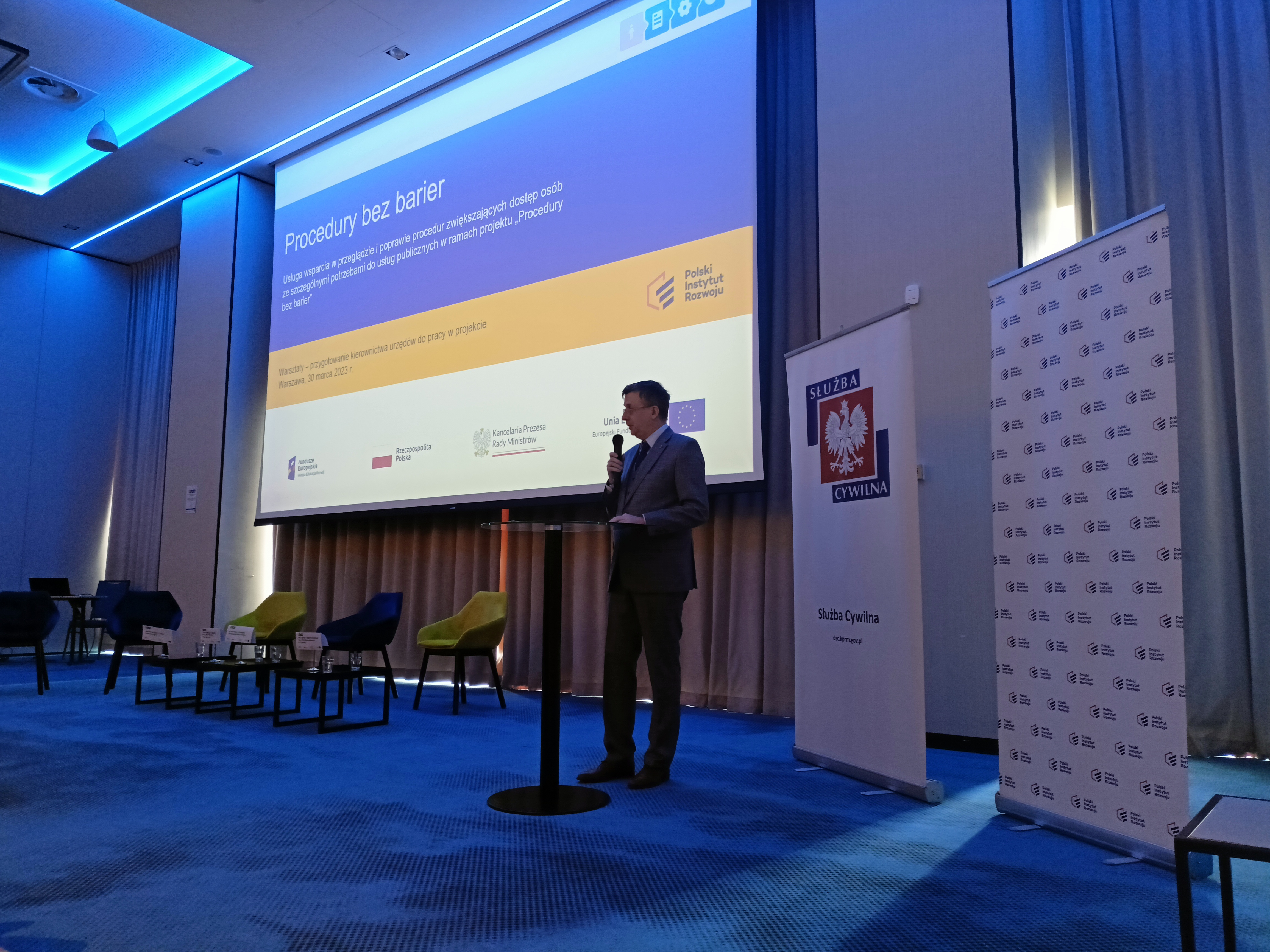 Na początku słowo do wszystkich uczestników skierował szef służby cywilnej Dobrosław Dowiat-Urbański. Wspomniał, że Departament Służby Cywilnej KPRM prowadzi obecnie trzy programy dostępnościowe. Wszystkie mają za cel likwidowanie barier – architektonicznych czy proceduralnych. Jednak najważniejsza jest zmiana podejścia urzędów do osób ze szczególnymi potrzebami. Wiele można dokonać bez zmian przepisów, czasem wystarczy zmiana świadomości i dotychczasowej praktyki. Minister zachęcił urzędy do aktywnego zaangażowania się w projekt.