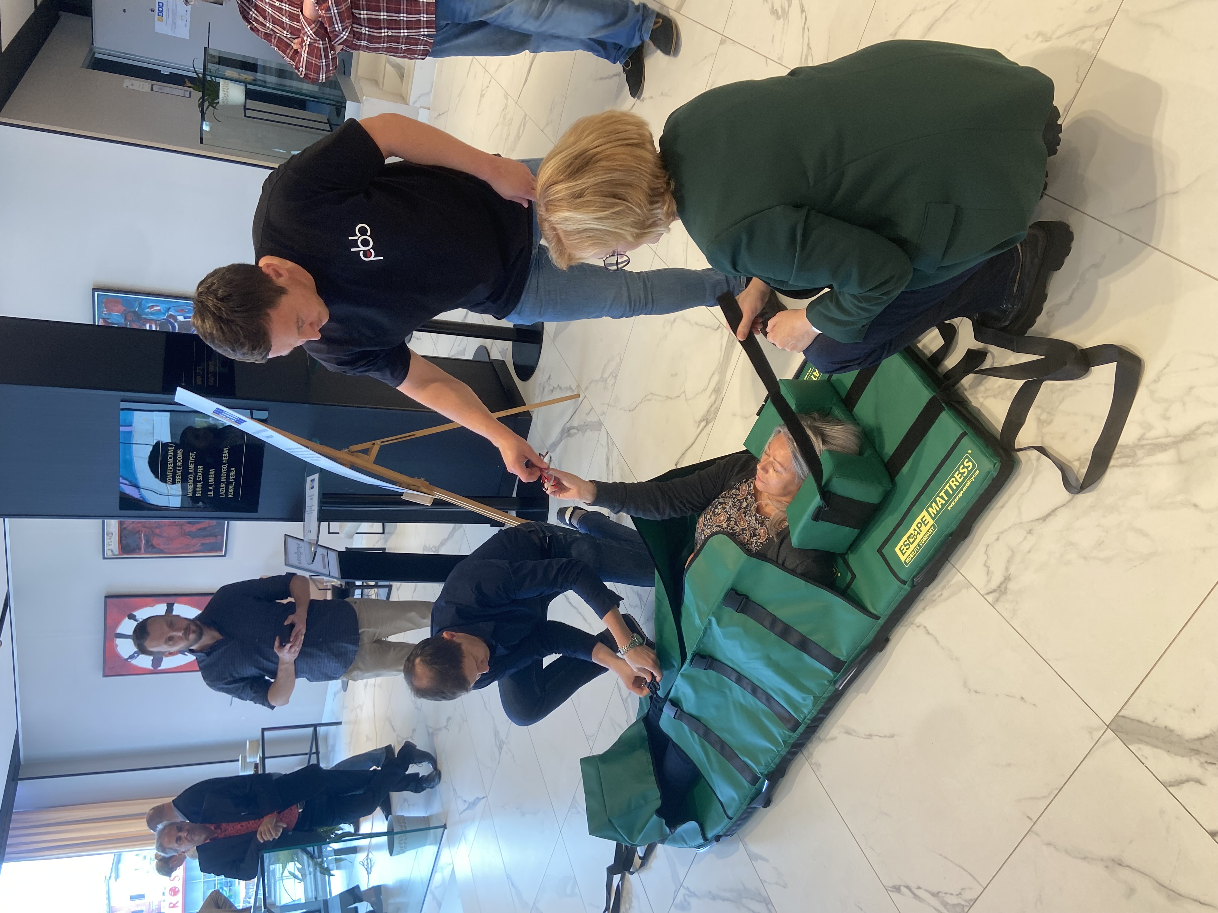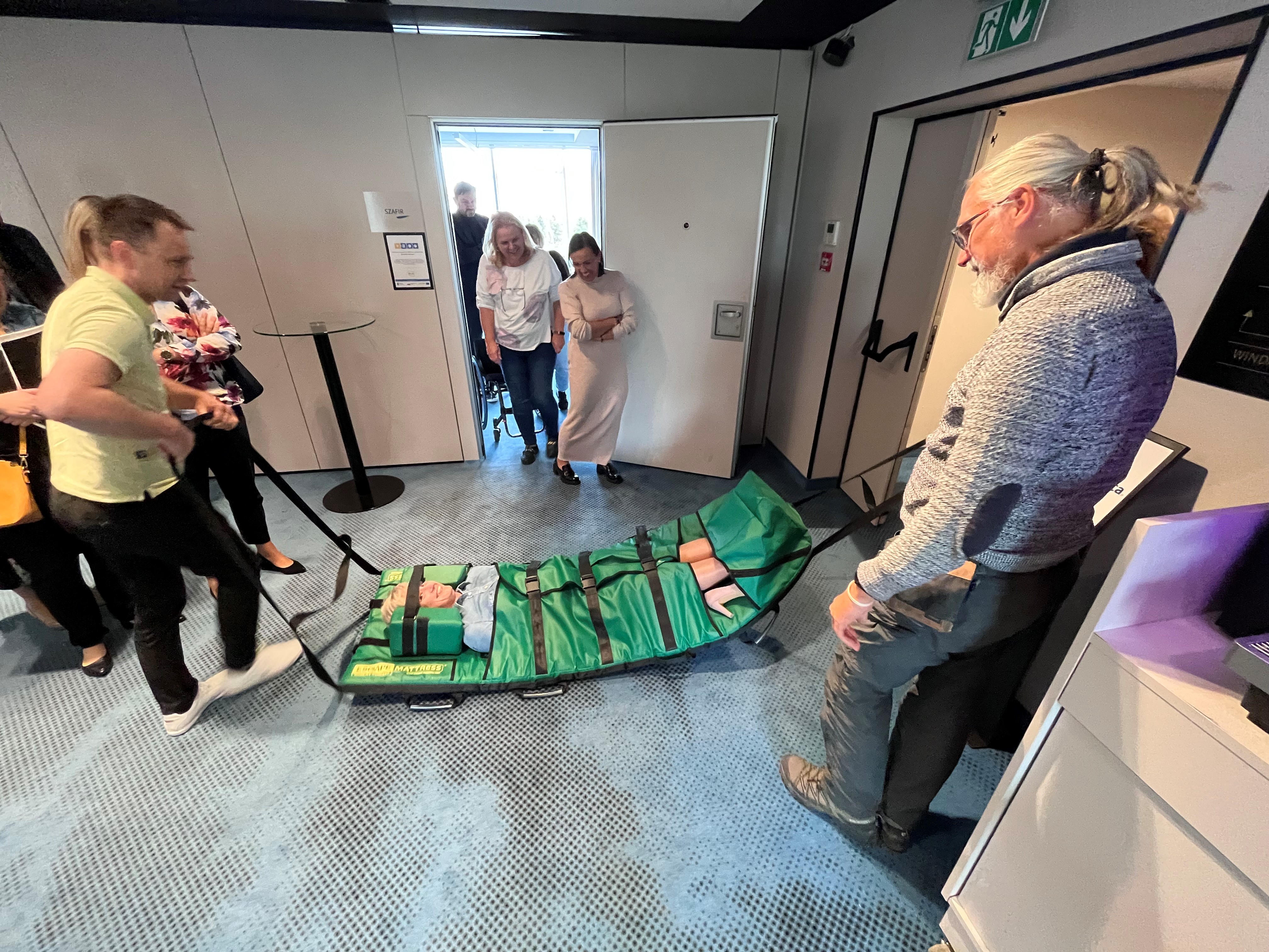 Uczestnicy wzięli udział ćwiczeniach z ewakuacji osób ze szczególnymi potrzebami z wykorzystaniem specjalistycznego sprzętu. Mieli także okazję pracować warsztatowo nad aspektami dzielenia się wiedzą oraz jak komunikować dostępność urzędu, w tym jak współpracować z organizacjami pozarządowymi.