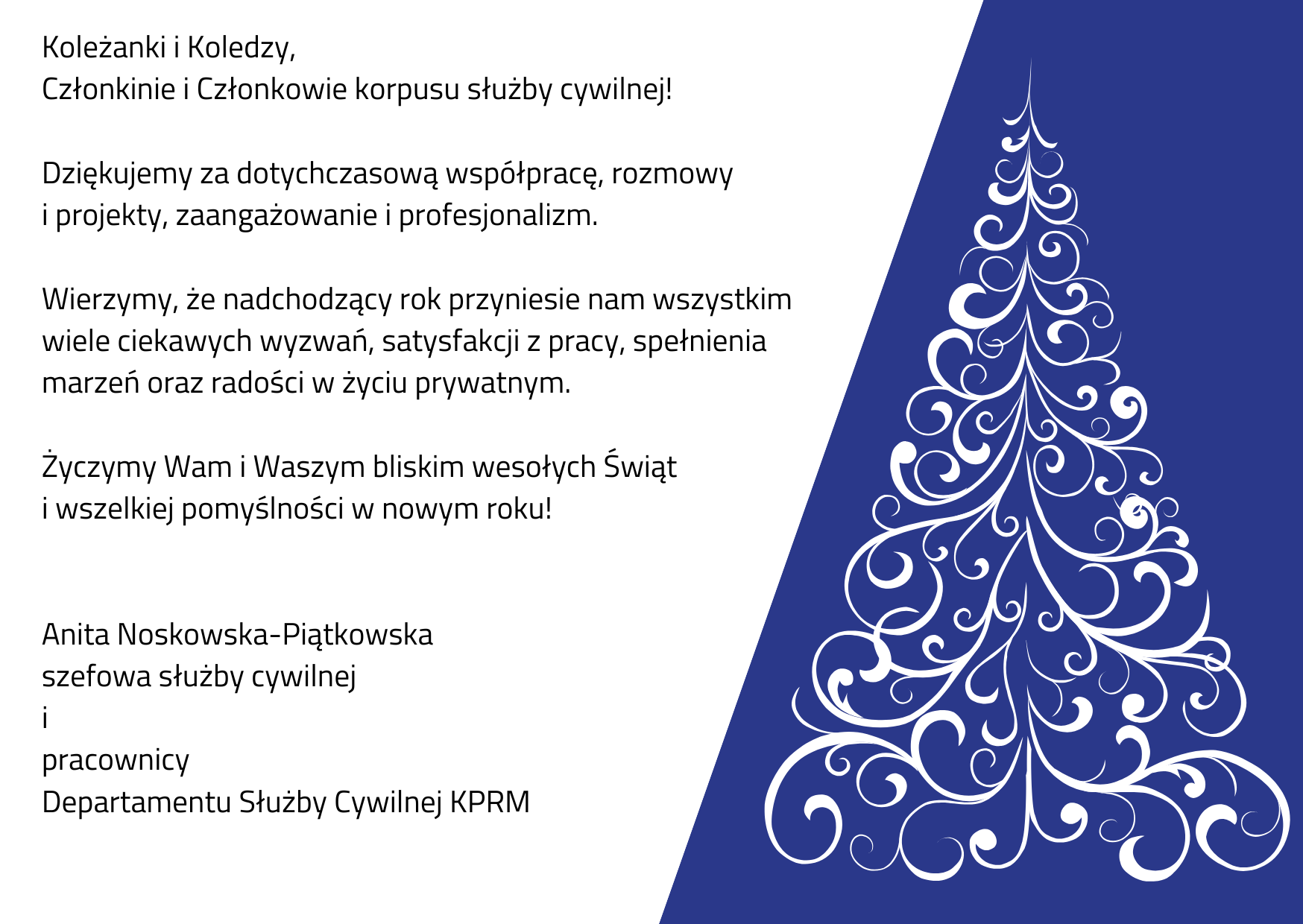 Życzenia świąteczne od szefowej służby cywilnej i Departamentu Służby Cywilnej KPRM