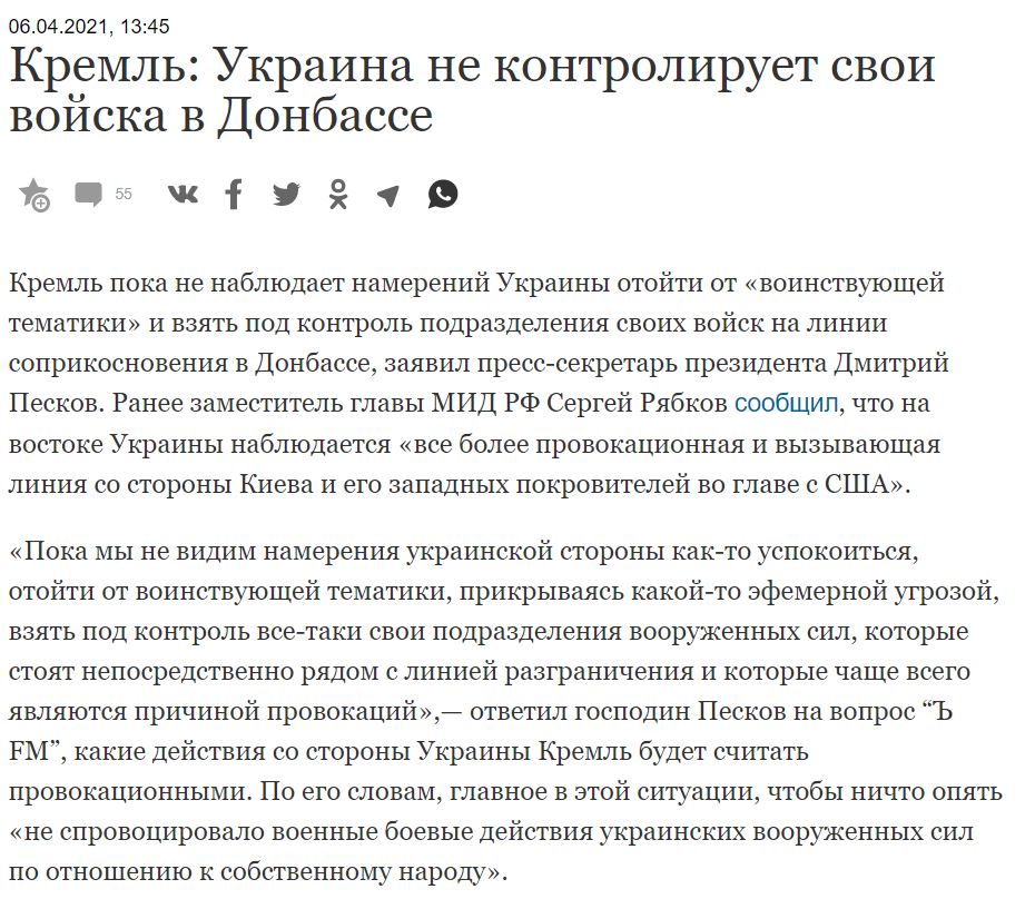 The propaganda publications also cite accusations against Ukraine of breaking the Minsk arrangements, the implementation of which must be revived. The texts present the Russian rebels from Donetsk and Luhansk as the legitimate authorities and partners for talks for Kiev.