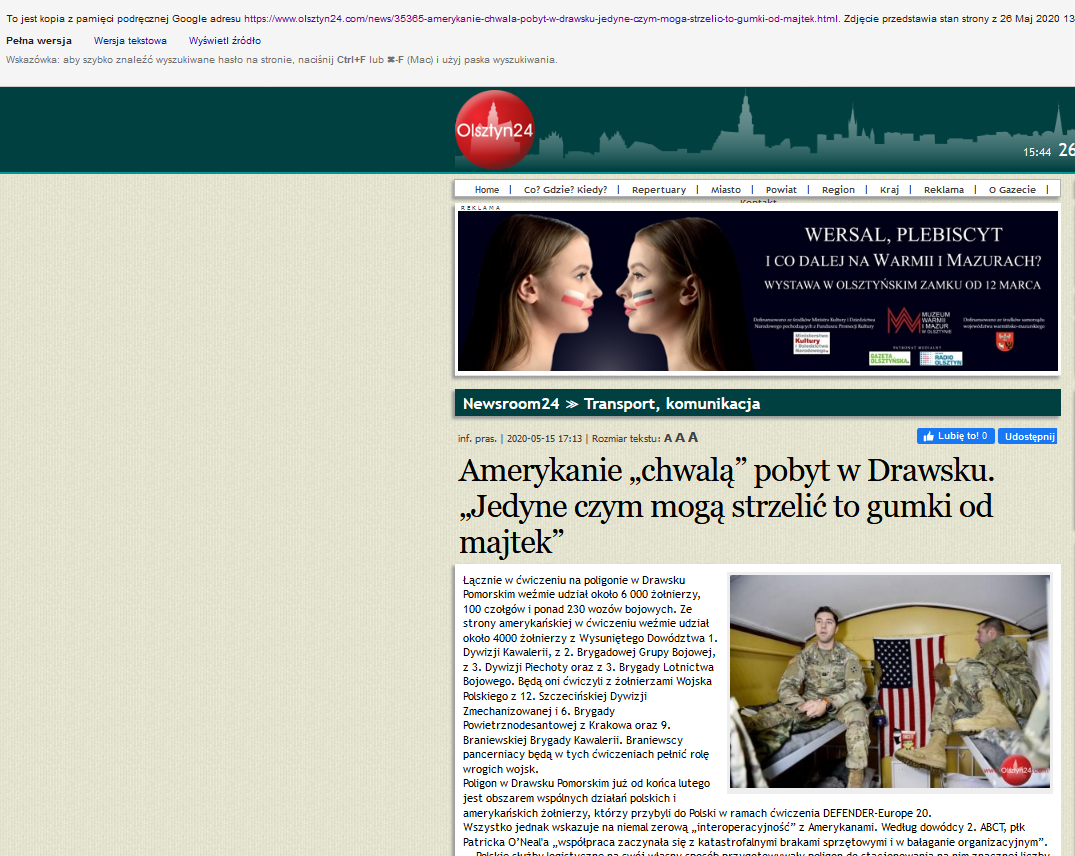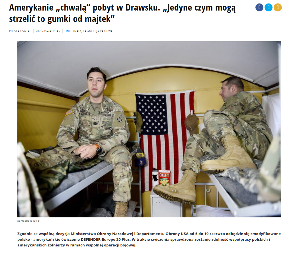 Rosyjskie ataki informacyjne są na stałe wymierzone we współpracę militarną Polski i USA. Zidentyfikowane działania zbiegają się w czasie z rozpoczęciem kolejnej fazy ćwiczeń DEFENDER-Europe-20, które odbywają się w Polsce.