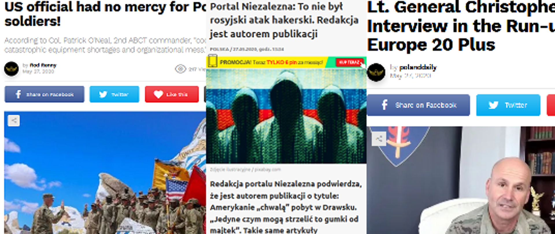 W wyniku działań informacyjnych na kilku polskich stronach internetowych doszło do opublikowania treści wpisujących się w propagandę Kremla wymierzoną w NATO. Za pomocą narzędzi cybernetycznych, w tym ataków hakerskich, doszło do umieszczenia w serwisach treści odnoszącej się do trwających ćwiczeń Defender Europe-20.