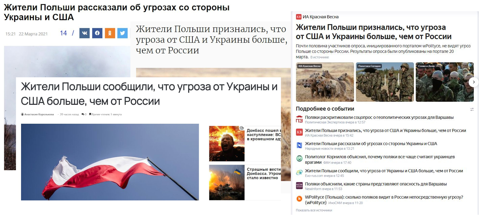 As part of fueling distrust between the Polish and American military, Russian propaganda argued that “Poland values Russian planes higher” than American ones. Once again, the propaganda texts were written based on the comments of individual Internet users.