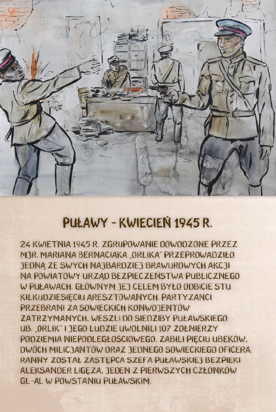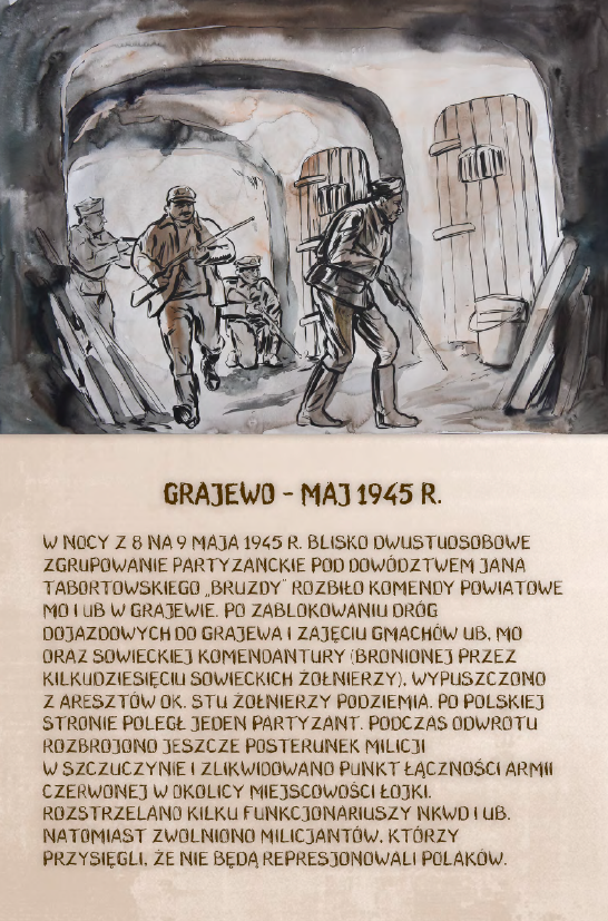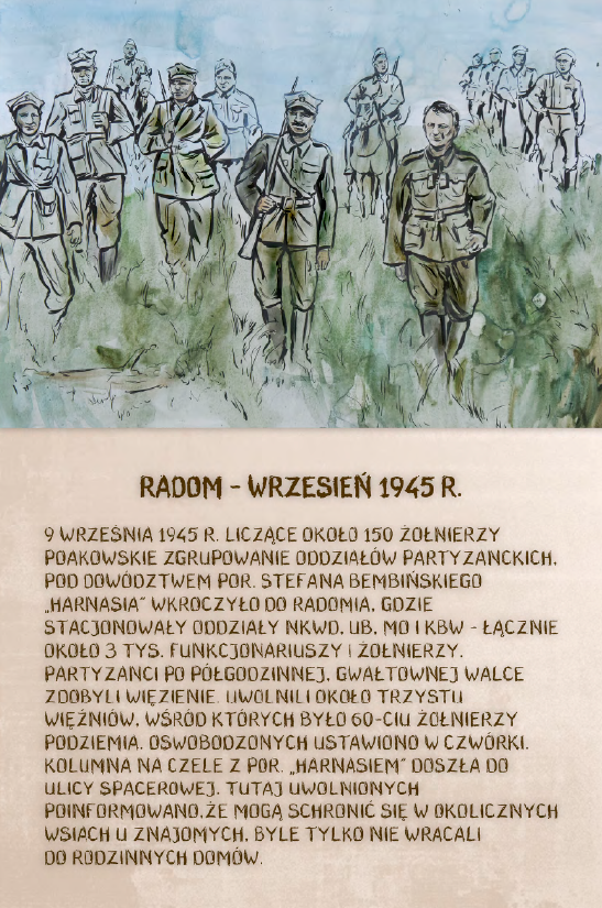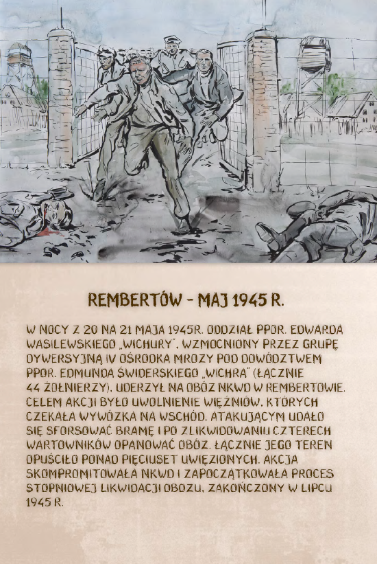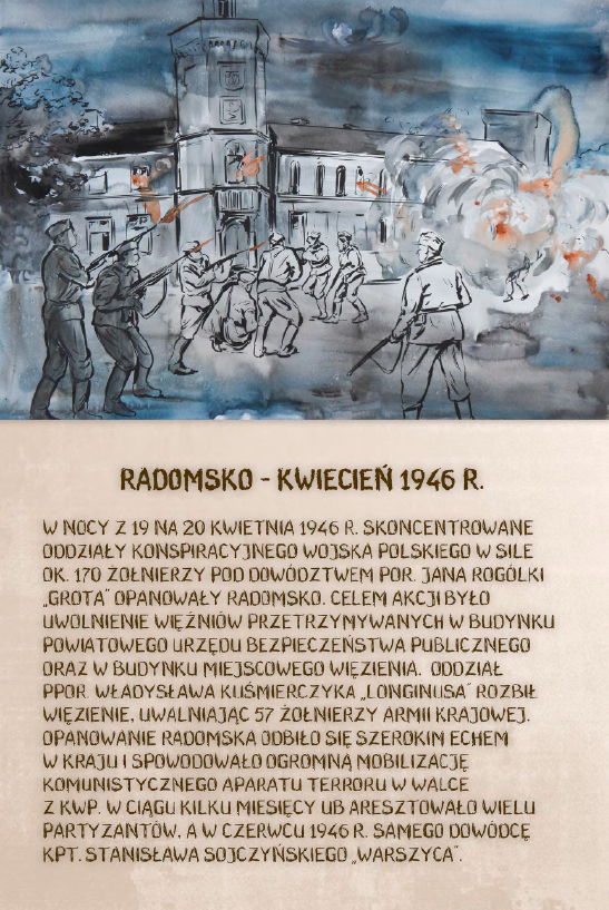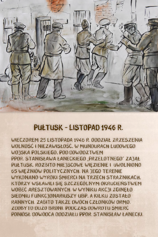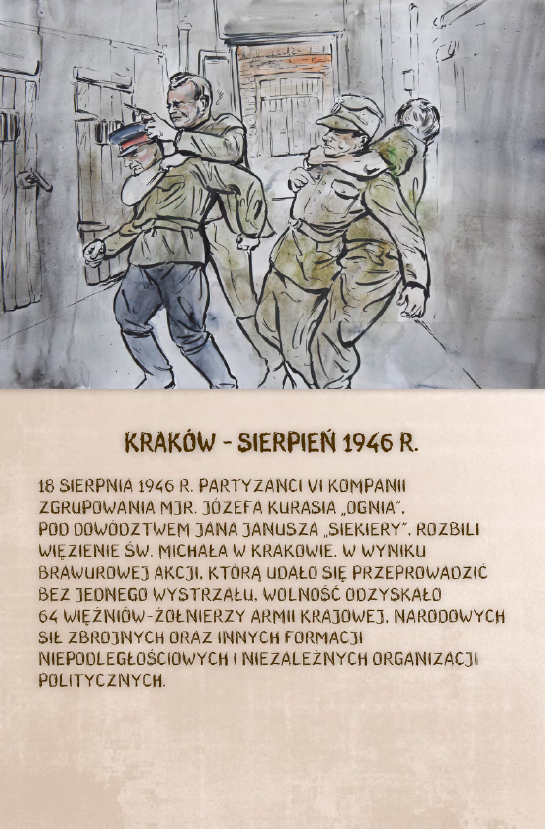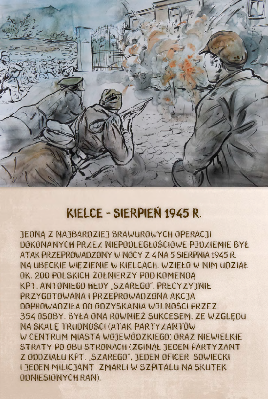 Dzięki ekspozycji można dowiedzieć się m.in. o brawurowej operacji dokonanej przez niepodległościowe podziemie w sierpniu 1945 r., której celem było ubeckie więzienie w Kielcach. W nocnym ataku wzięło udział 200 polskich żołnierzy pod komendą kpt. Antoniego Hedy „Szarego”. Precyzyjnie zaplanowana i przeprowadzona akcja doprowadziła do uwolnienia 354 osób.