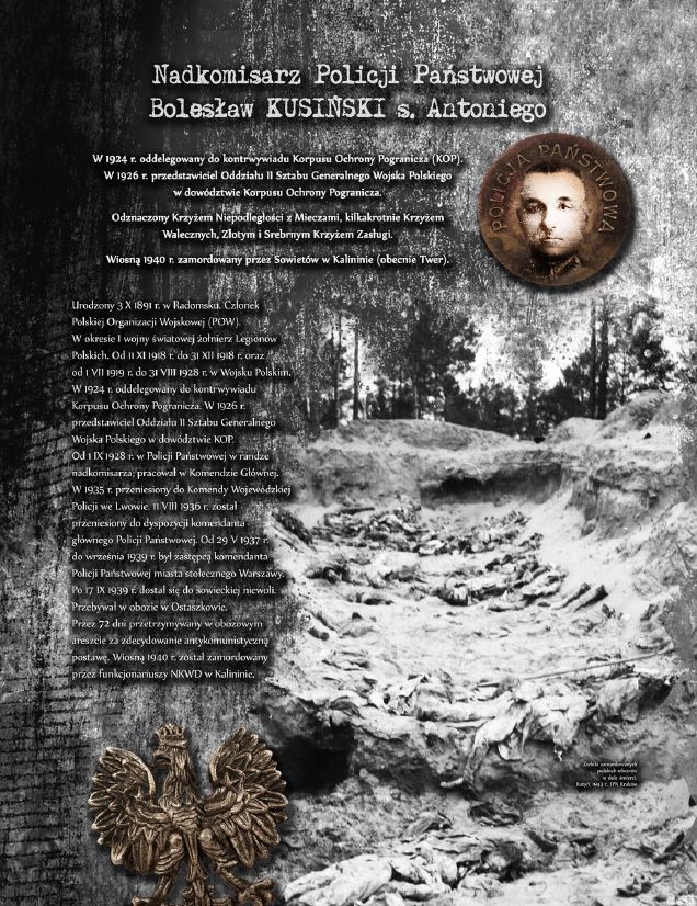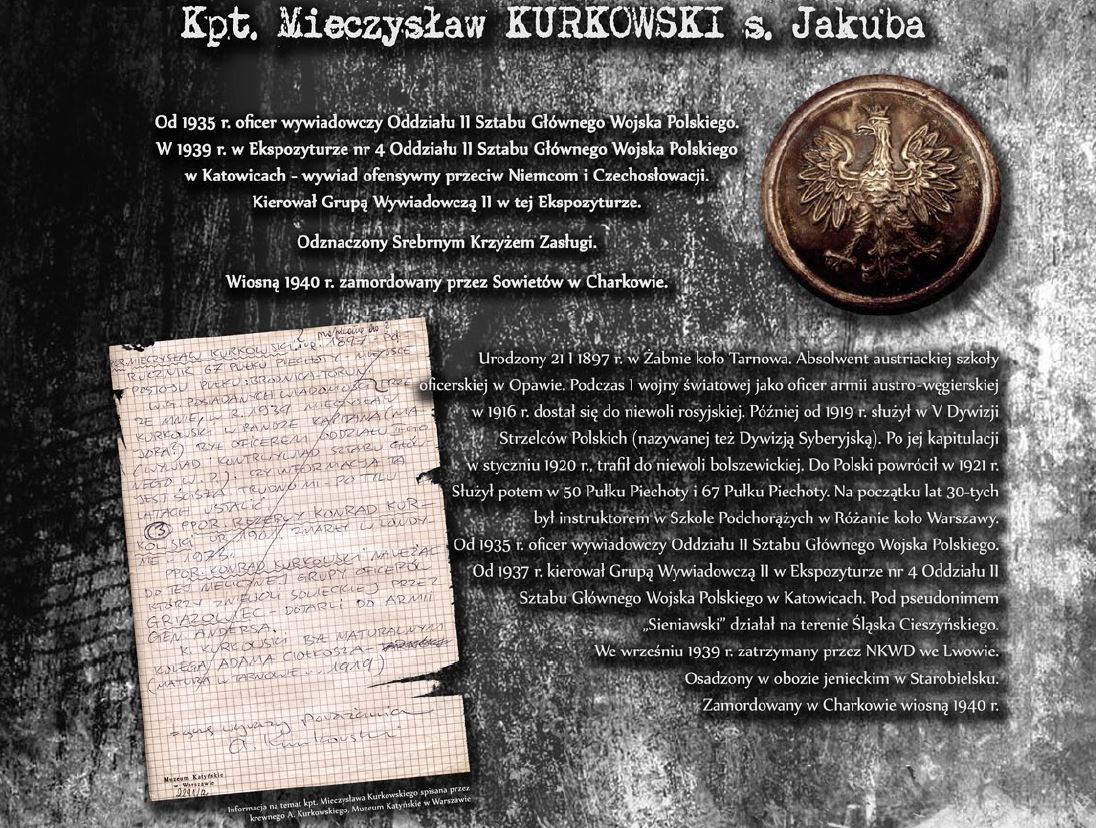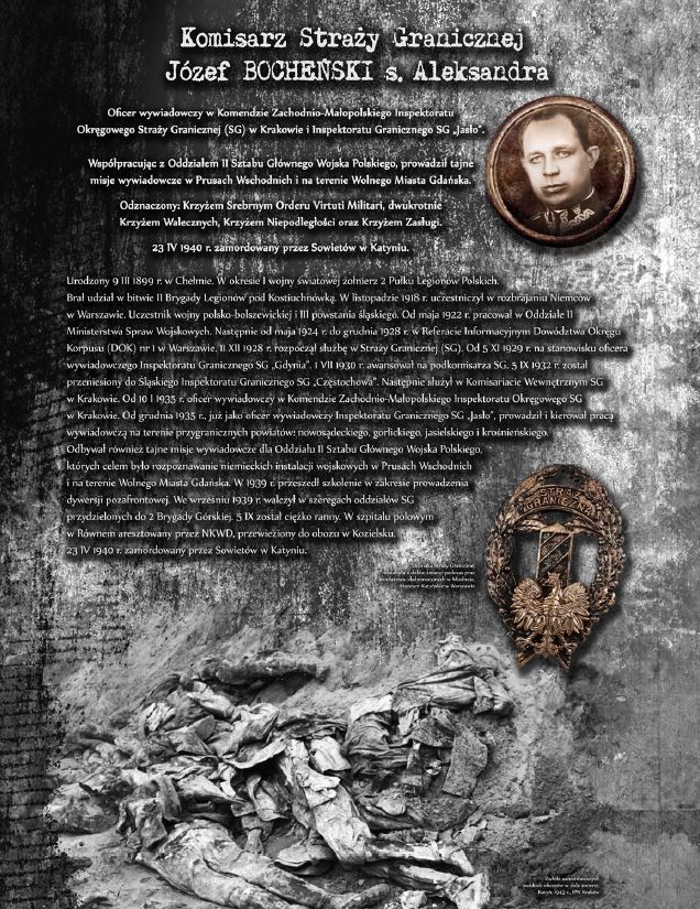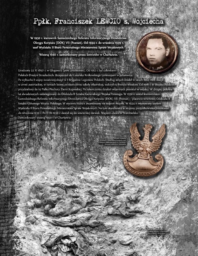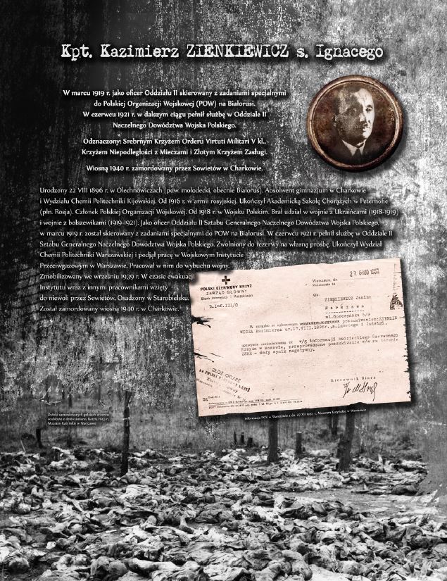 Wystawa prezentuje sylwetki oficerów Wojska Polskiego, Straży Granicznej oraz Policji Państwowej, którzy stracili życie, zamordowani przez Sowietów w Katyniu, Charkowie oraz Kalininie. Ekspozycja opatrzona została niezwykle przejmującymi zdjęciami dołów śmierci w Katyniu.