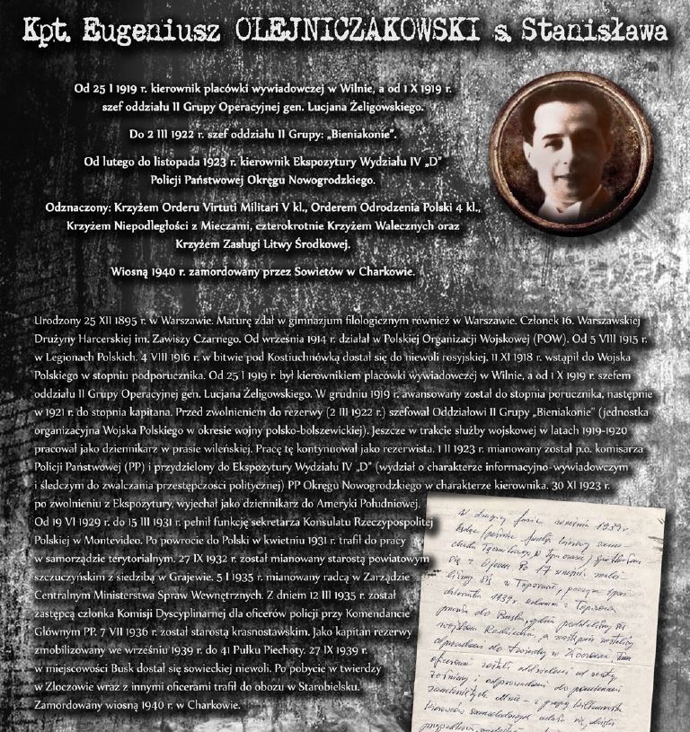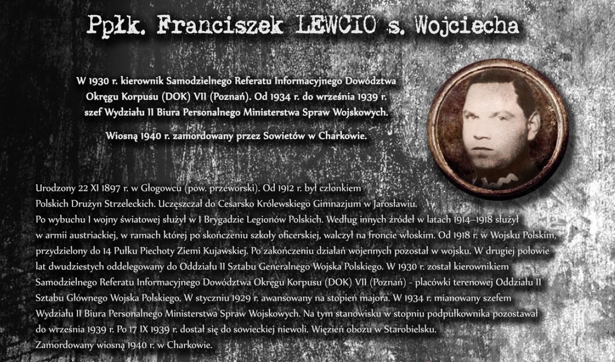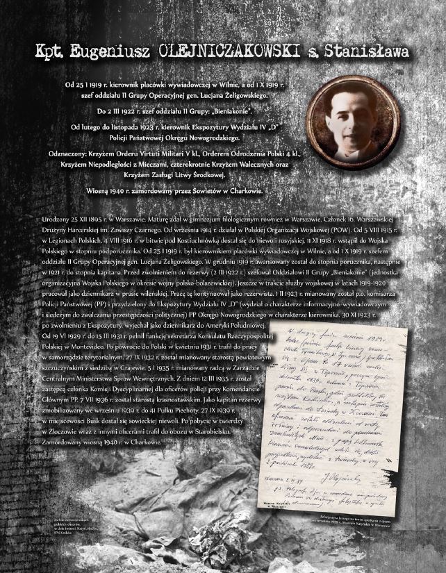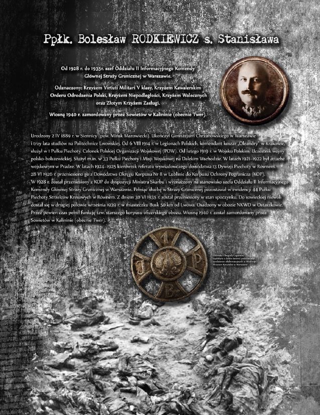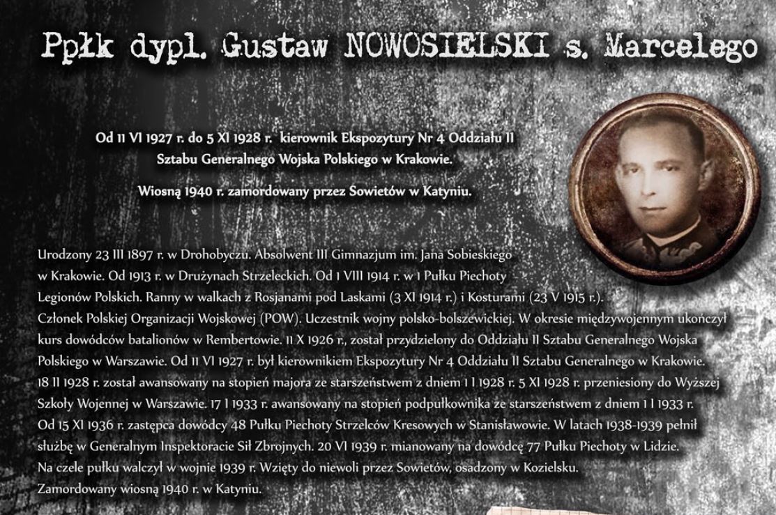 Wystawa prezentuje sylwetki oficerów Wojska Polskiego, Straży Granicznej oraz Policji Państwowej, którzy stracili życie, zamordowani przez Sowietów w Katyniu, Charkowie oraz Kalininie. Ekspozycja opatrzona została niezwykle przejmującymi zdjęciami dołów śmierci w Katyniu.