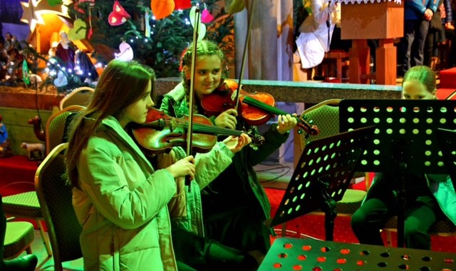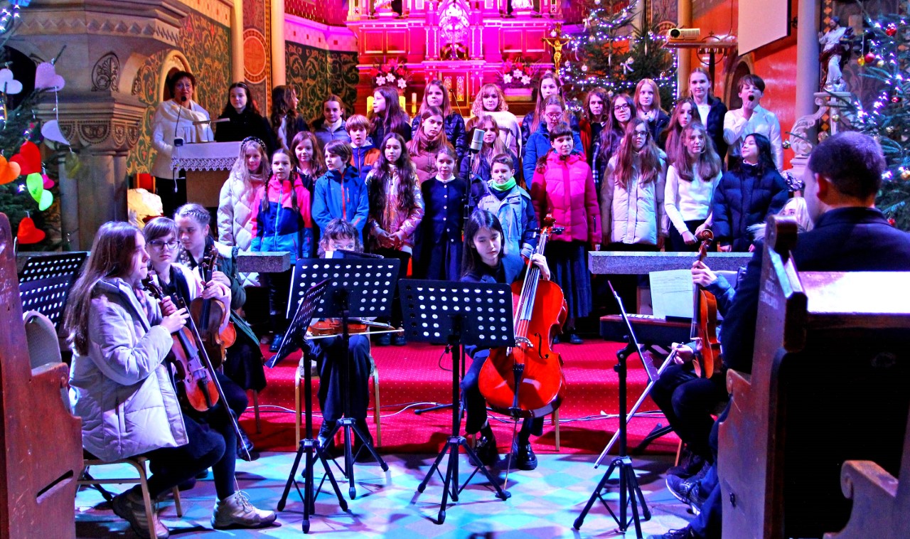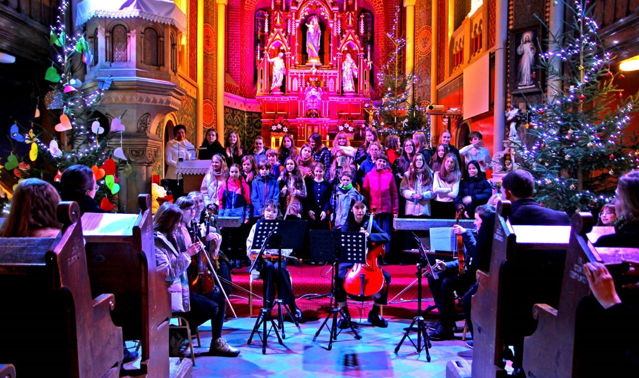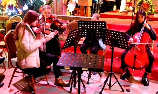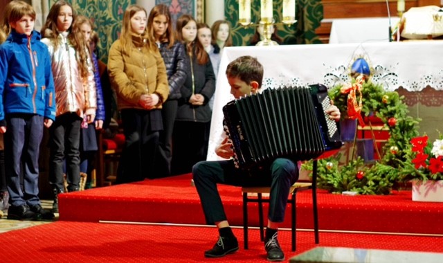 Lokalna społecznośc miała możliwość wysłuchania kolęd w wykonaniu chóru, orkiestry, kwartetu smyczkowego, zespołu akordeonowego, duety trąbek i akordeonu.