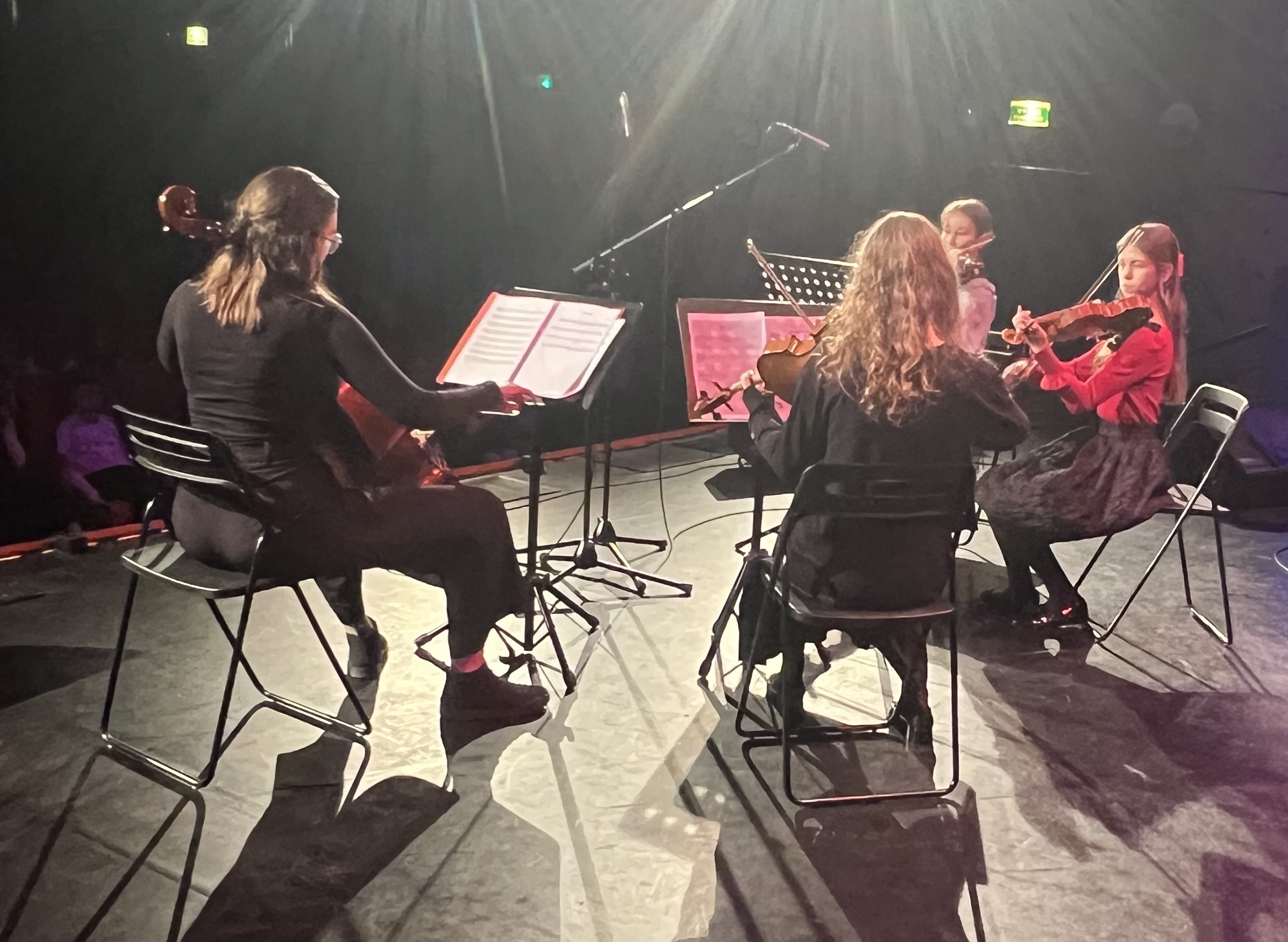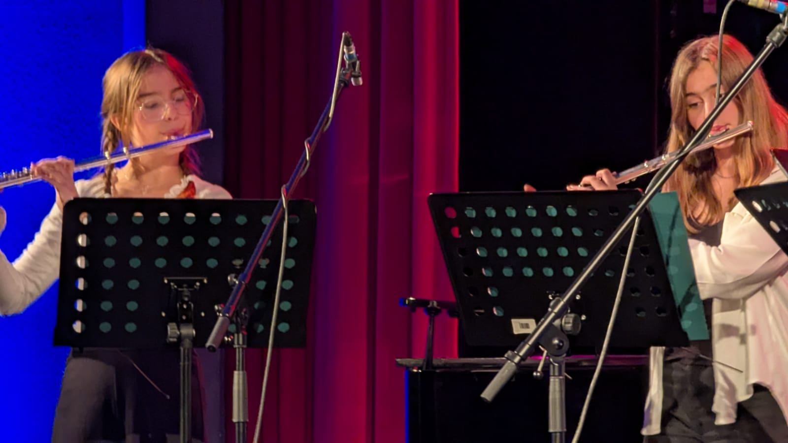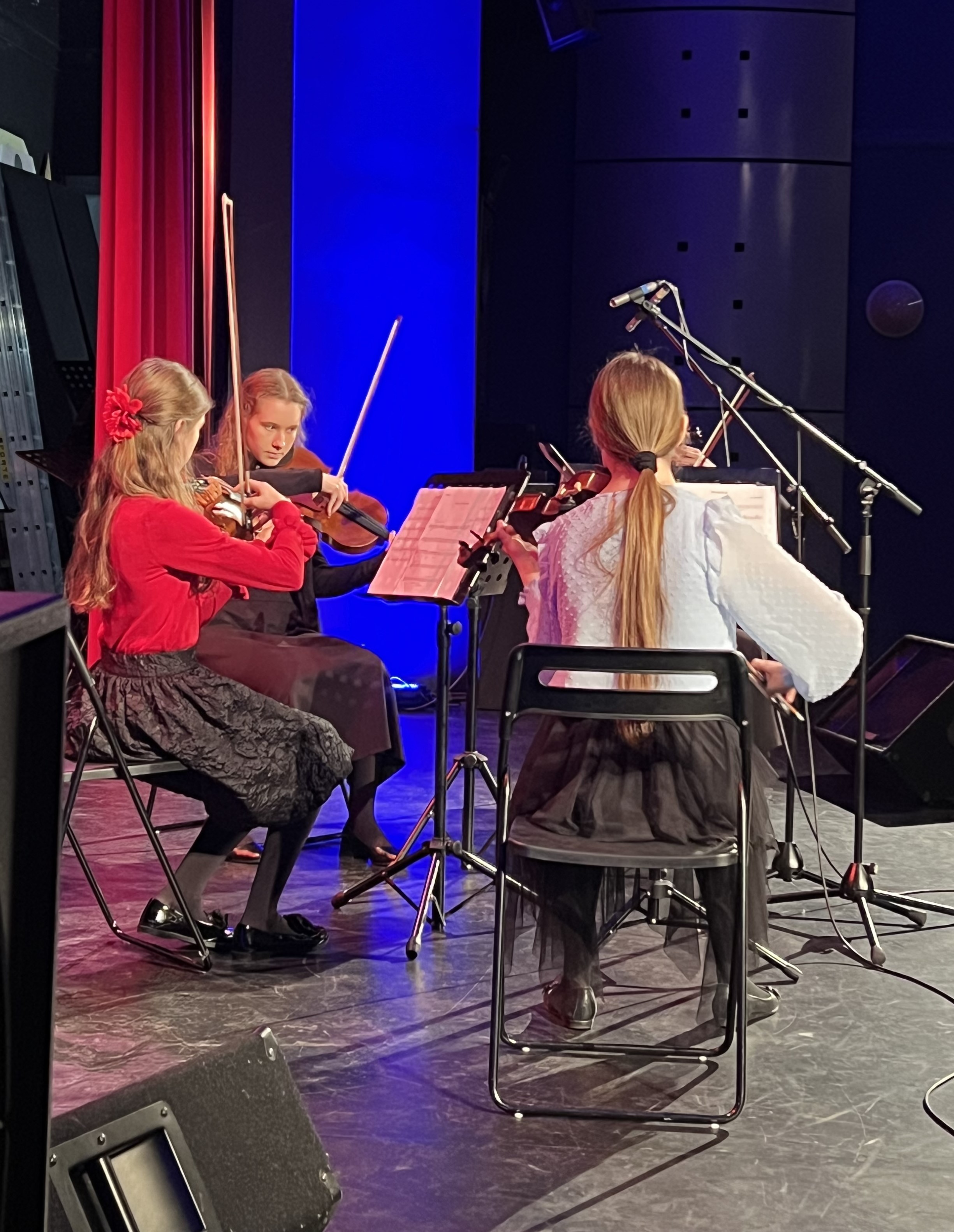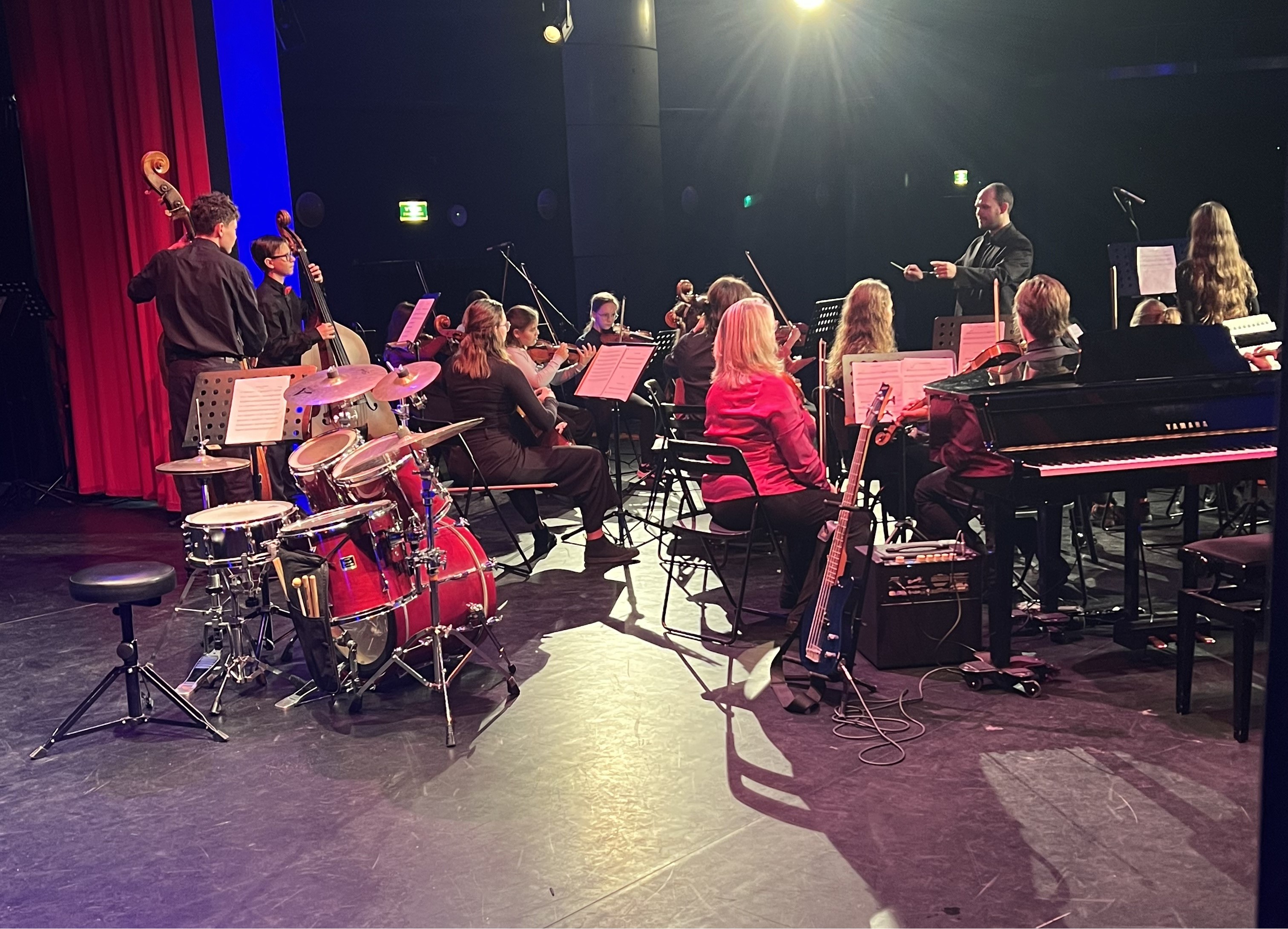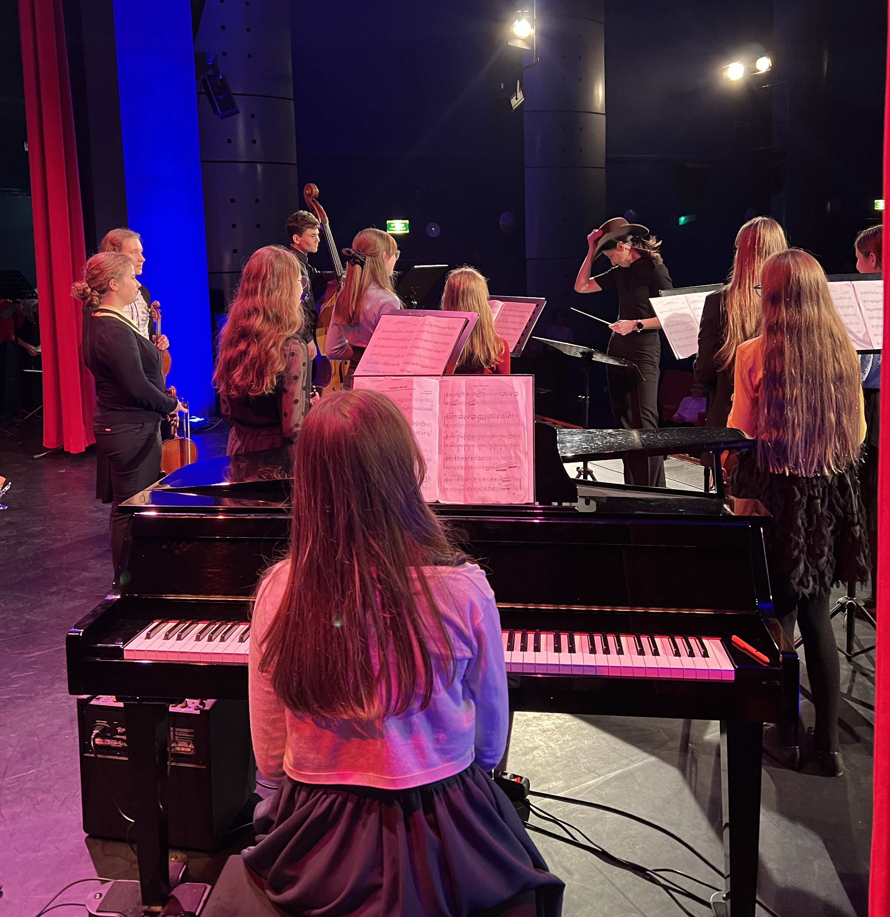 Na tle nieba z zorzą polarną i zaśnieżonym lasem, elementy karnawałowe (balony, serpentyny, maska karnawałowa) i akcenty świąteczne (choinka, renifery). Kolorowy tekst informujący o ogólnoszkolnym koncercie kolędowo-karnawałowym, zaplanowanym na 25 stycznia 2025 w Centrum Kultury Pafawag przy ul. Chociebuskiej.