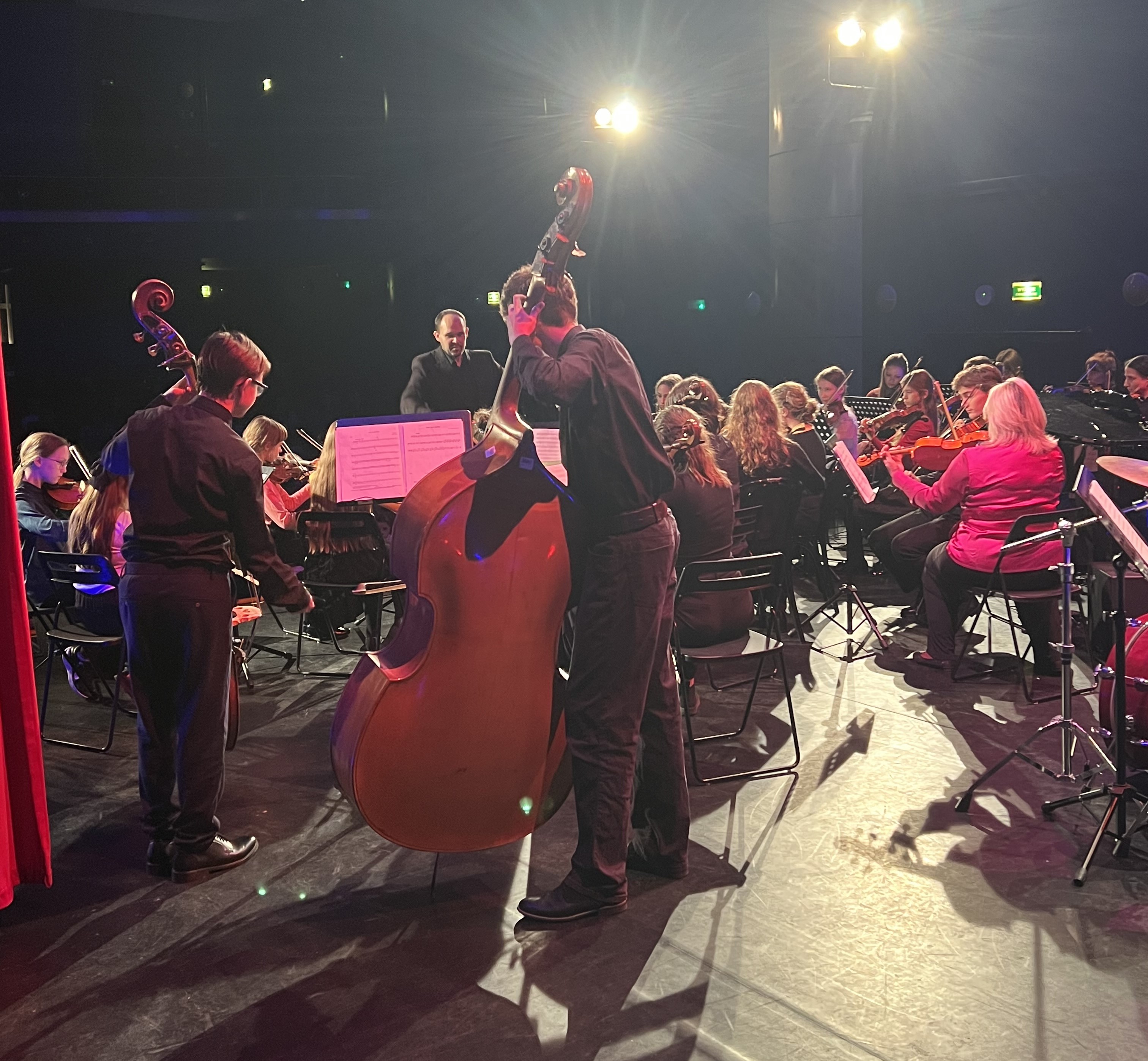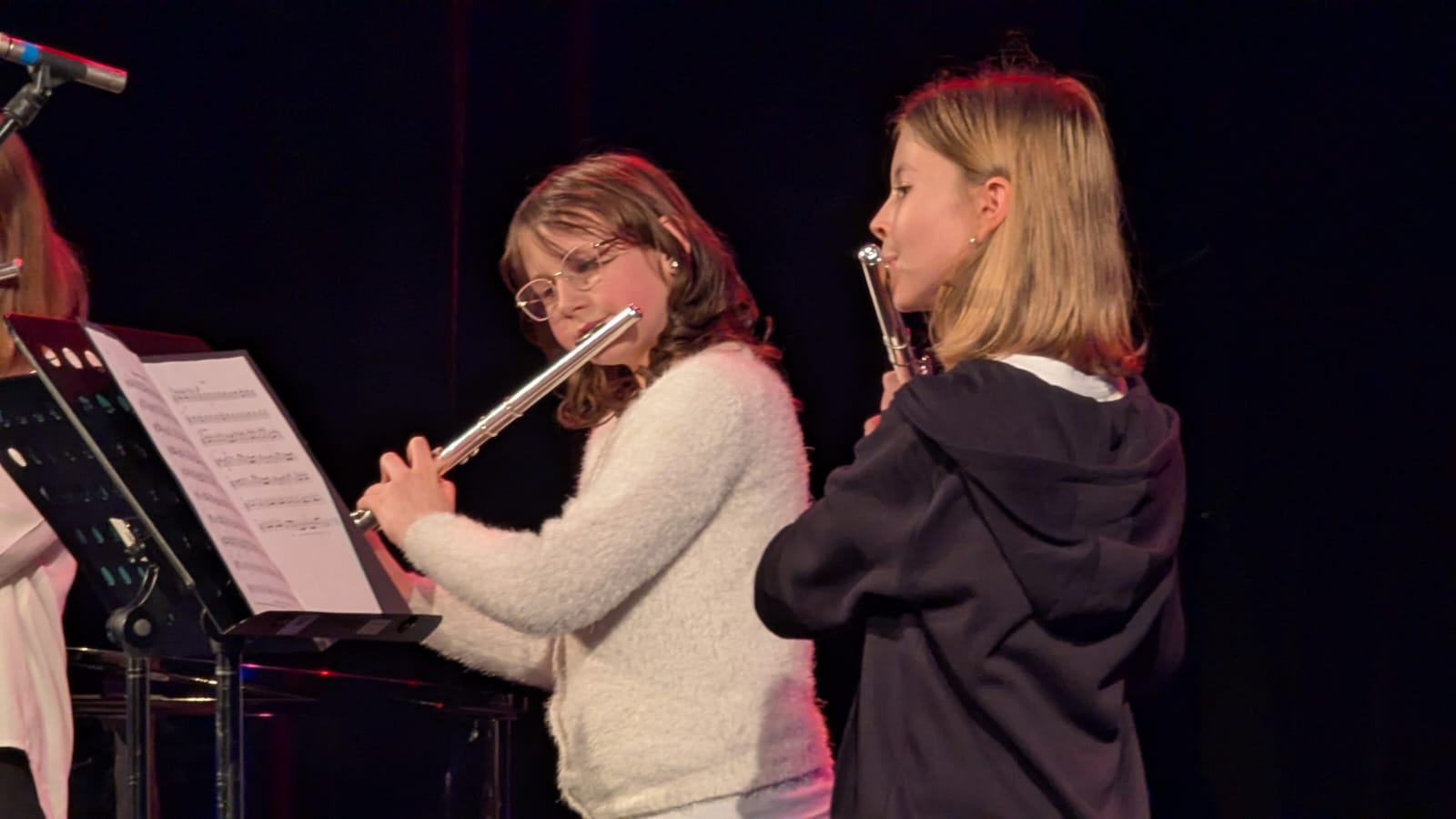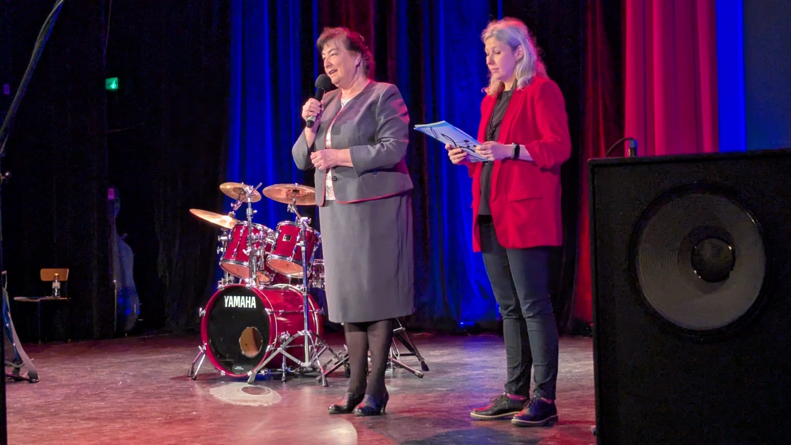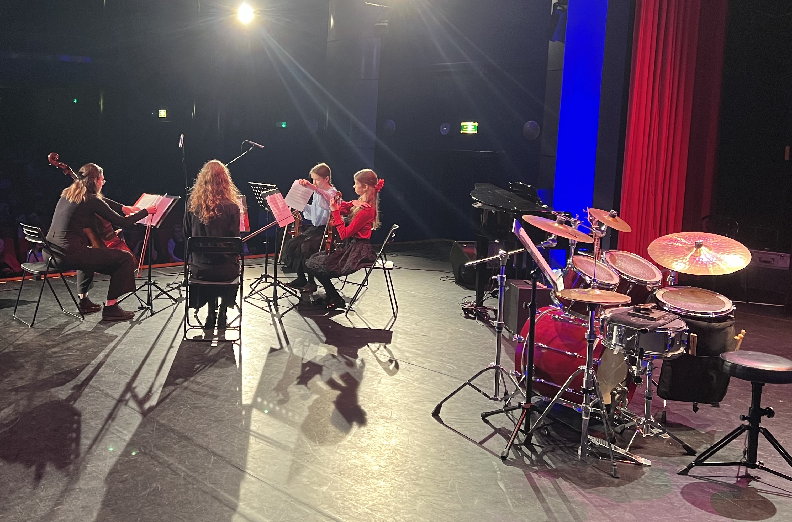 Na tle nieba z zorzą polarną i zaśnieżonym lasem, elementy karnawałowe (balony, serpentyny, maska karnawałowa) i akcenty świąteczne (choinka, renifery). Kolorowy tekst informujący o ogólnoszkolnym koncercie kolędowo-karnawałowym, zaplanowanym na 25 stycznia 2025 w Centrum Kultury Pafawag przy ul. Chociebuskiej.
