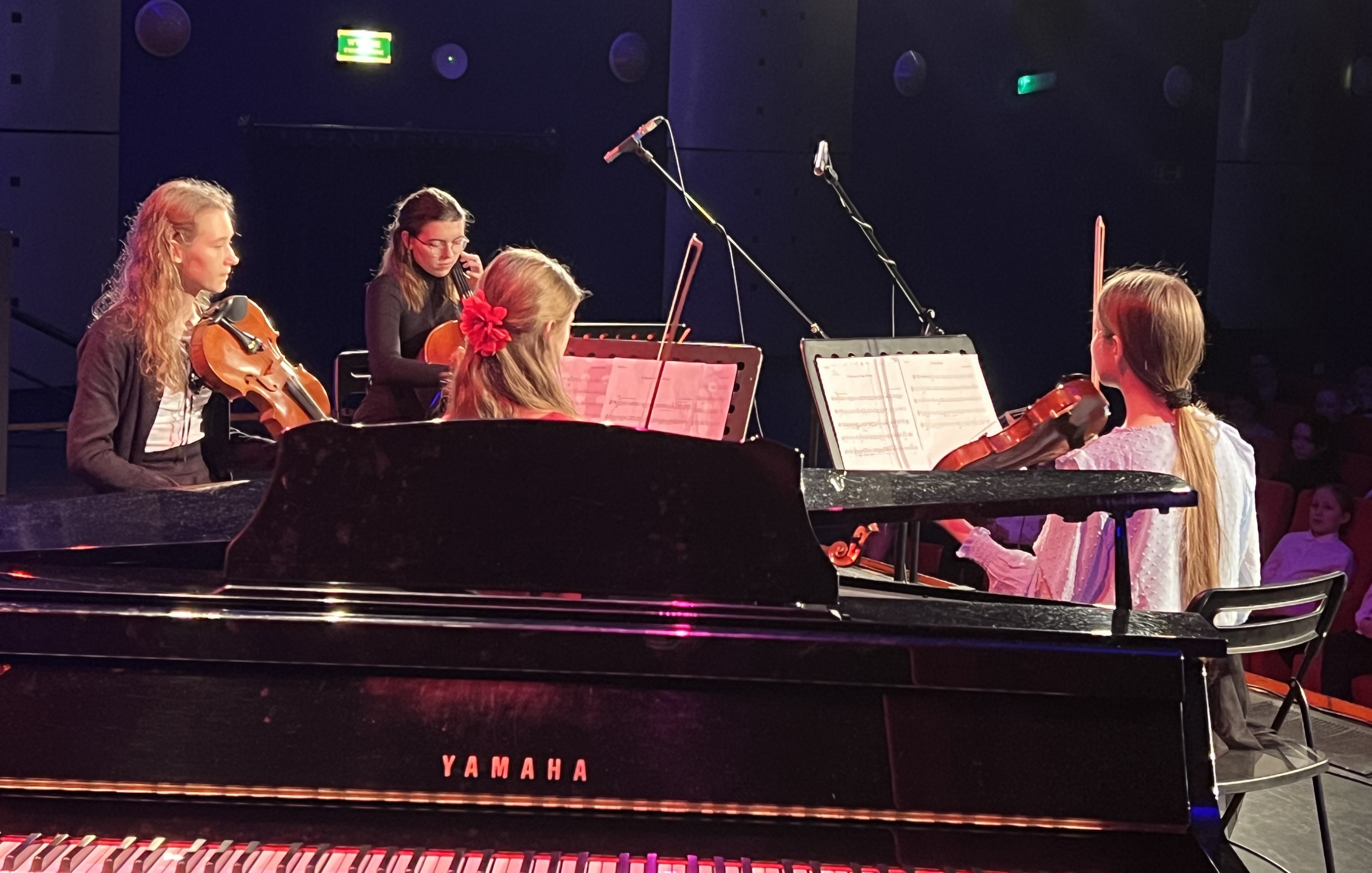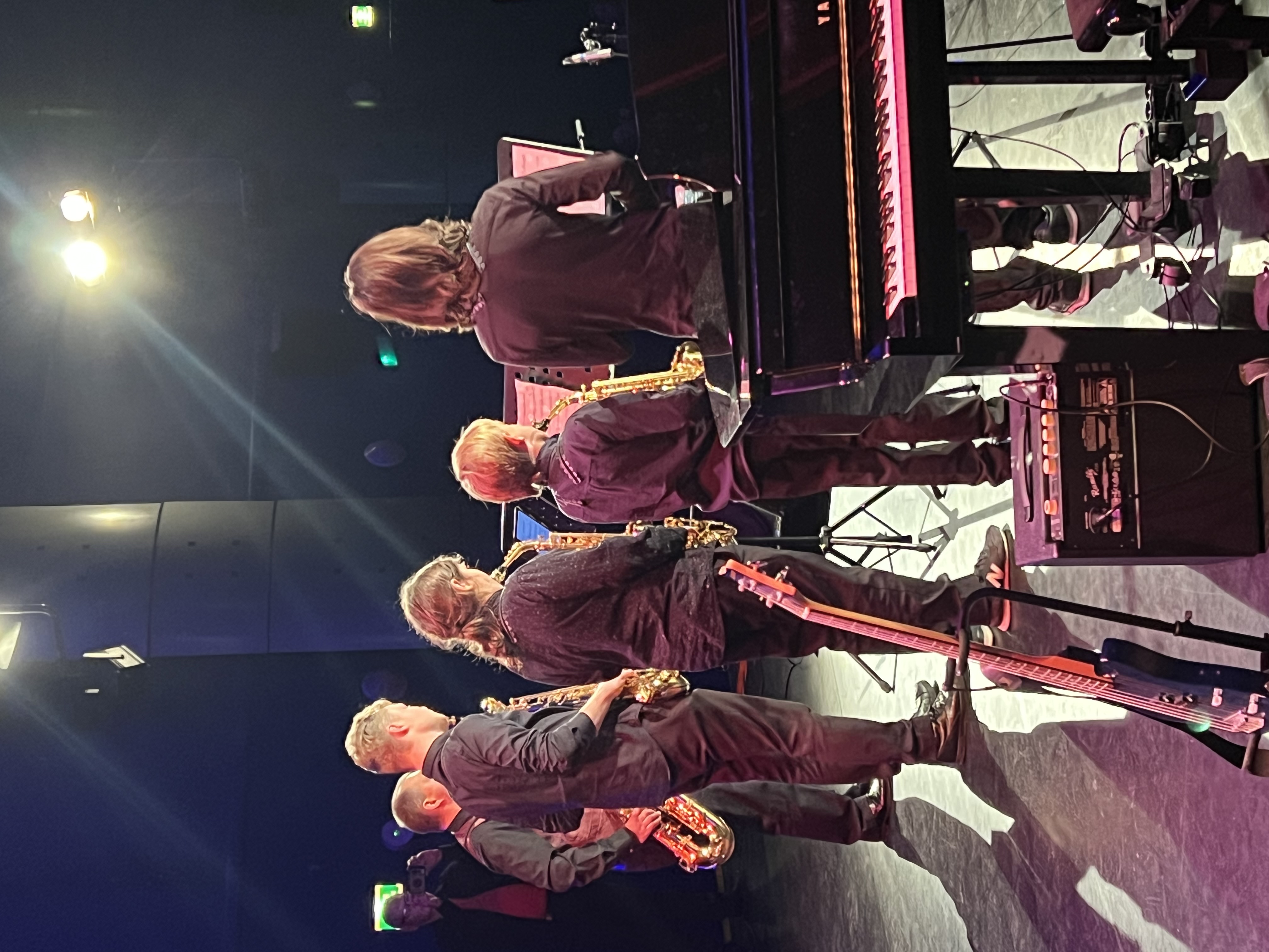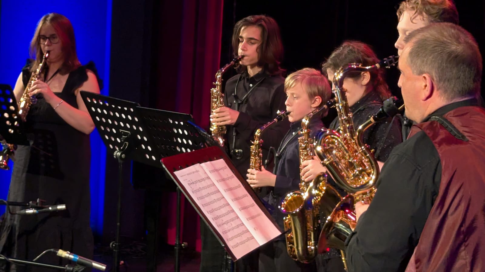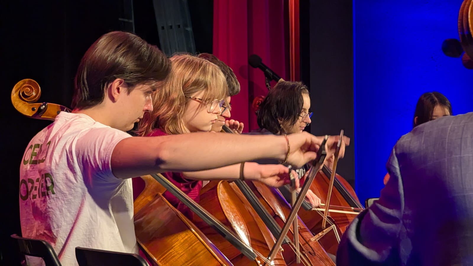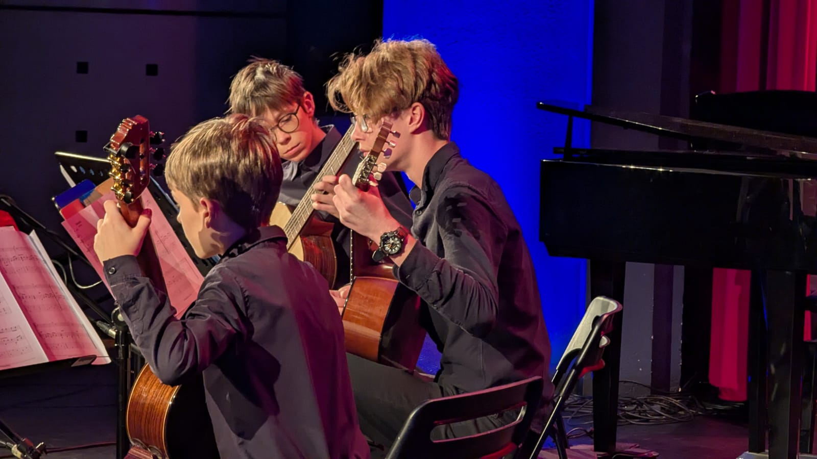 Na tle nieba z zorzą polarną i zaśnieżonym lasem, elementy karnawałowe (balony, serpentyny, maska karnawałowa) i akcenty świąteczne (choinka, renifery). Kolorowy tekst informujący o ogólnoszkolnym koncercie kolędowo-karnawałowym, zaplanowanym na 25 stycznia 2025 w Centrum Kultury Pafawag przy ul. Chociebuskiej.