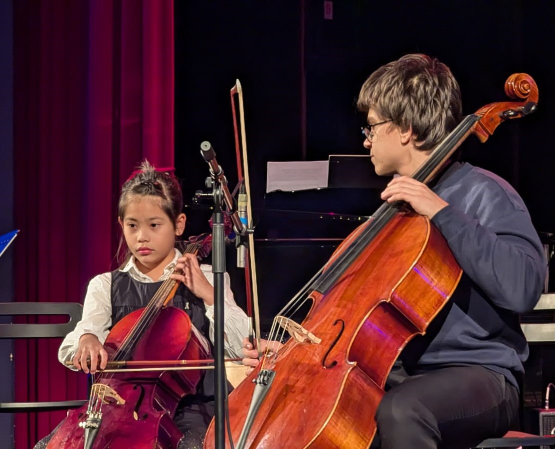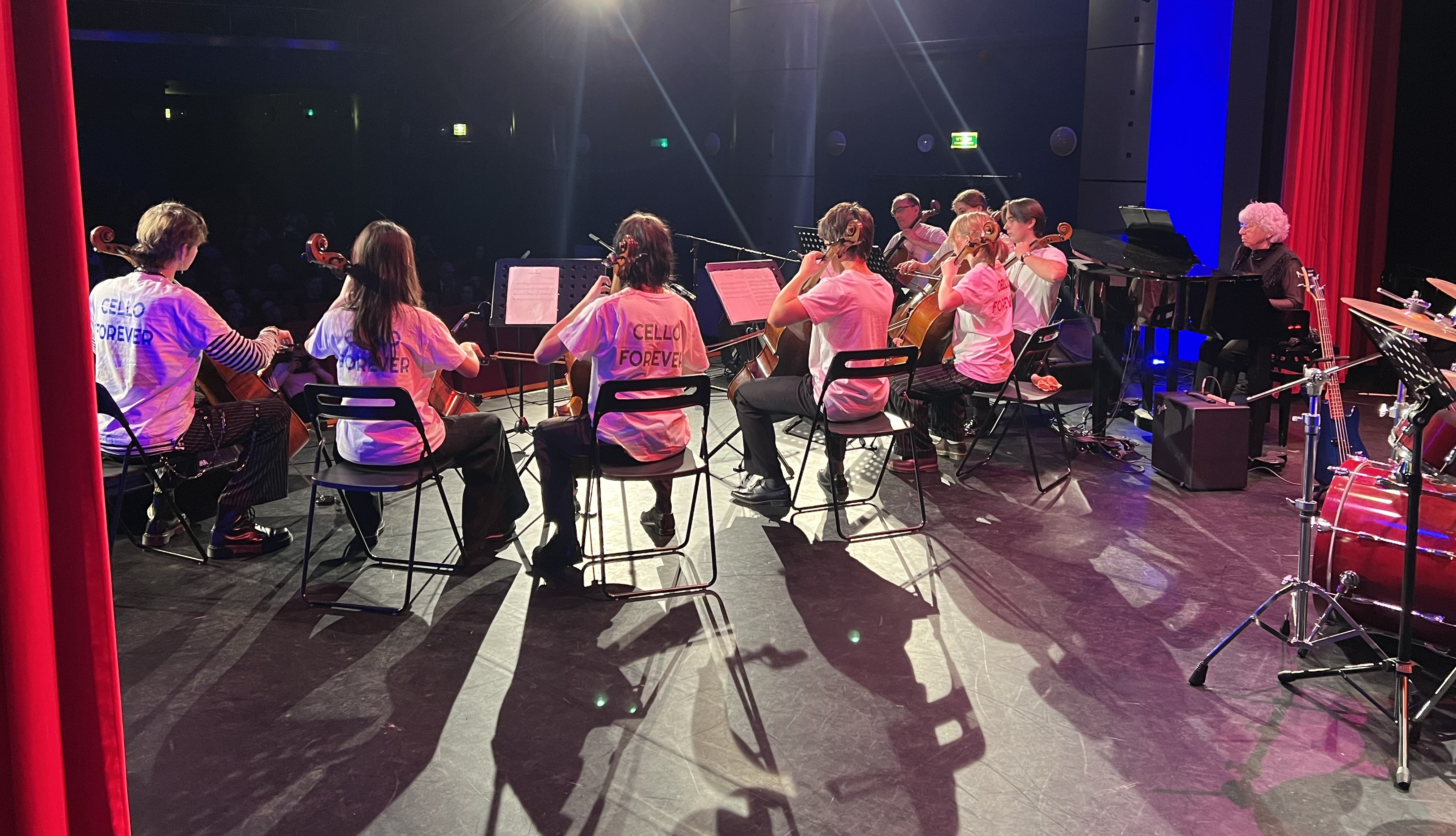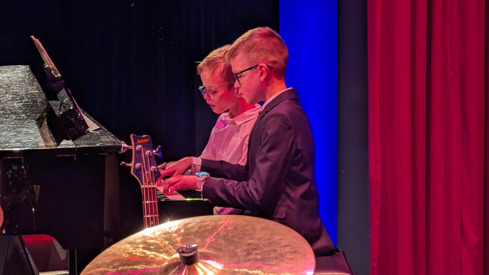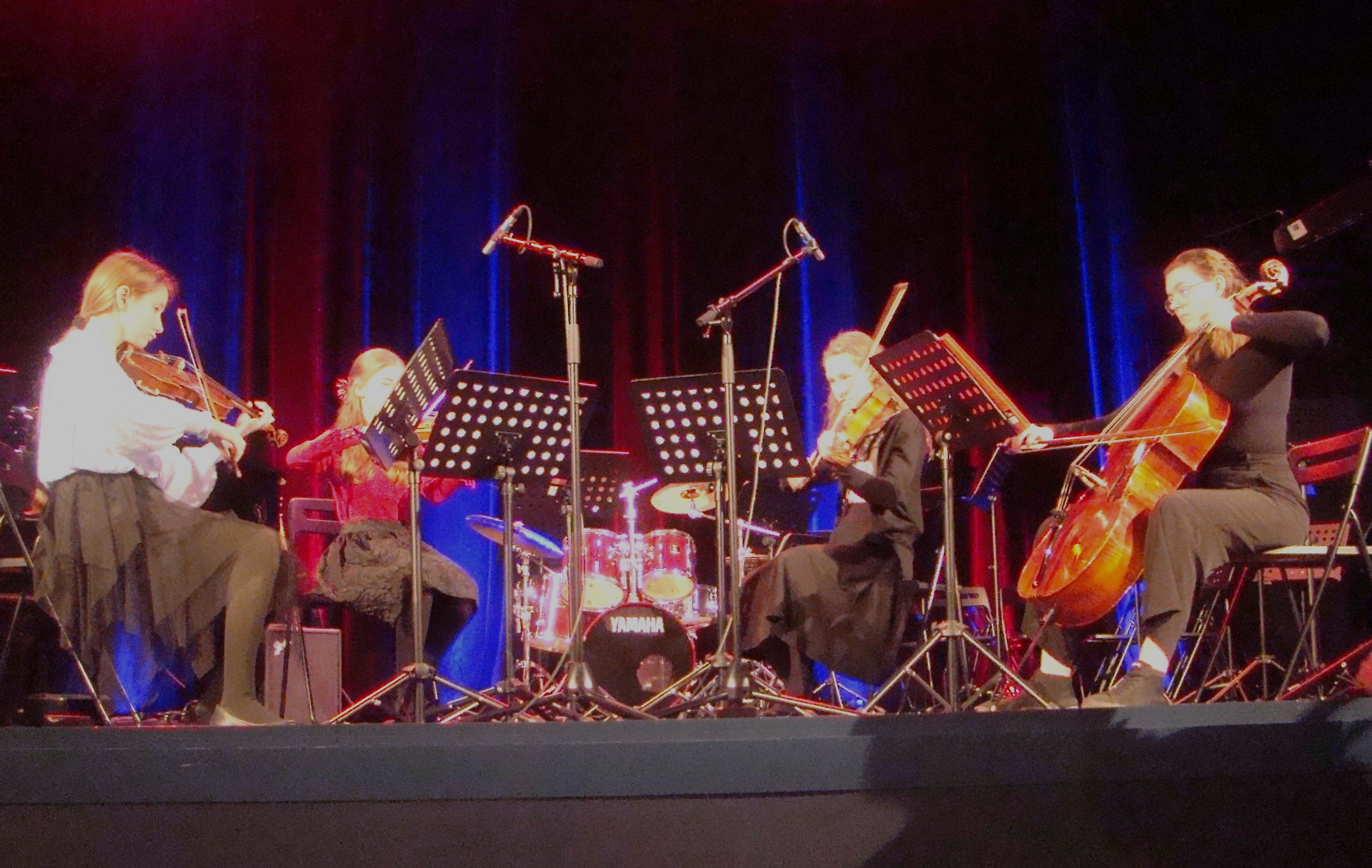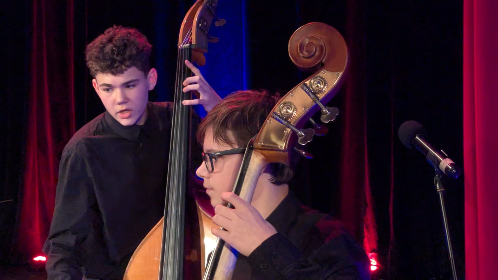 Na tle nieba z zorzą polarną i zaśnieżonym lasem, elementy karnawałowe (balony, serpentyny, maska karnawałowa) i akcenty świąteczne (choinka, renifery). Kolorowy tekst informujący o ogólnoszkolnym koncercie kolędowo-karnawałowym, zaplanowanym na 25 stycznia 2025 w Centrum Kultury Pafawag przy ul. Chociebuskiej.