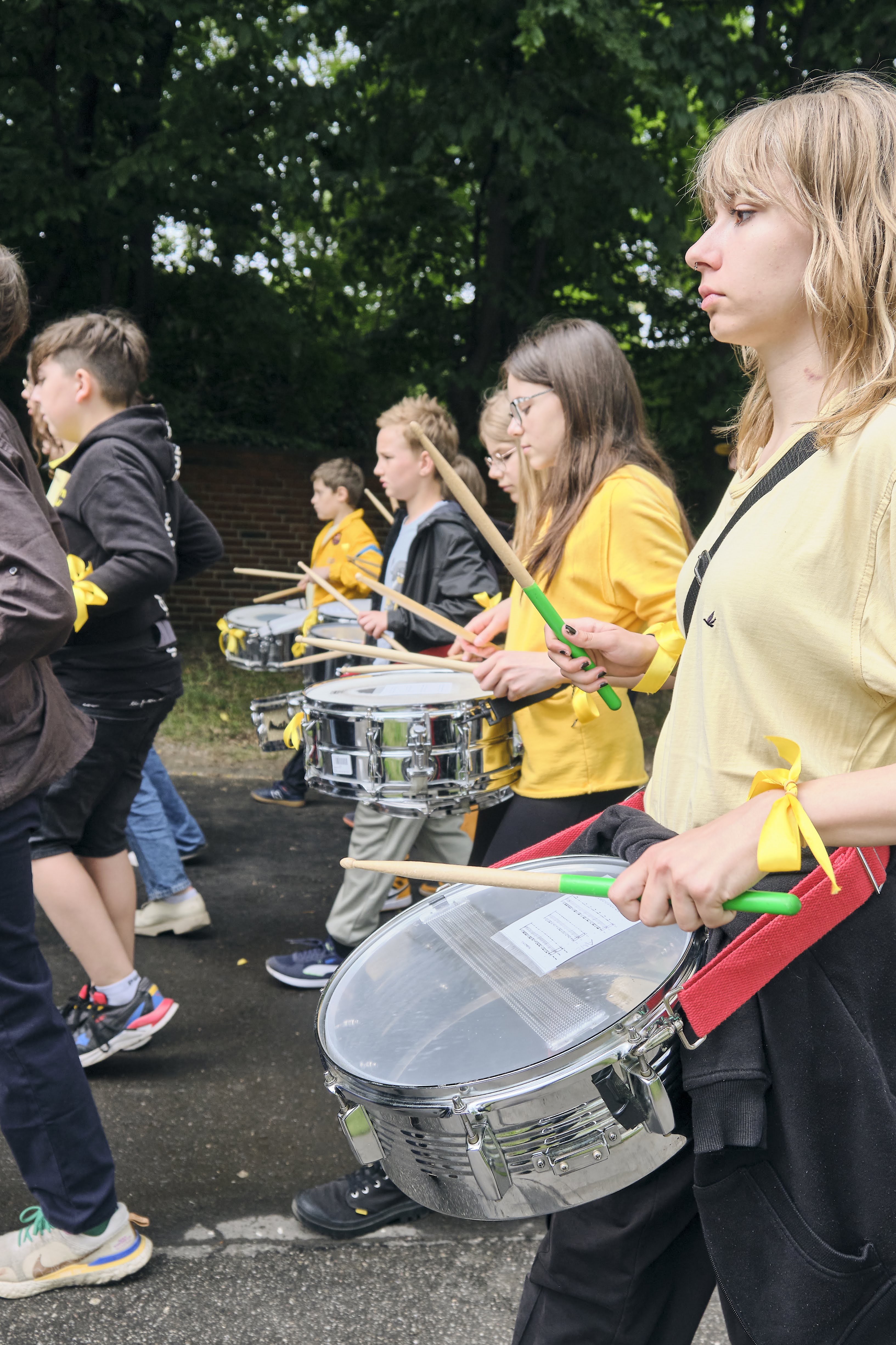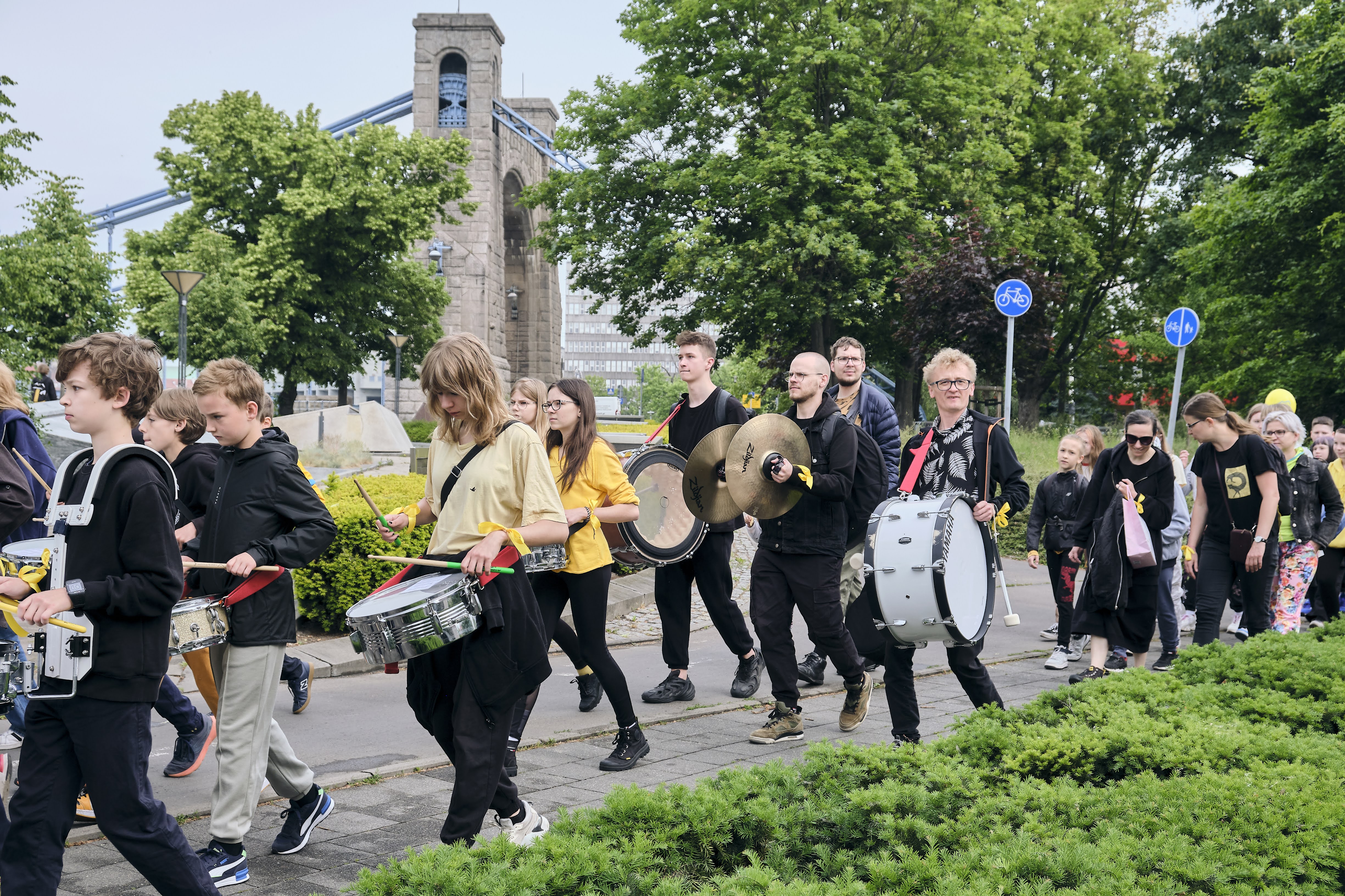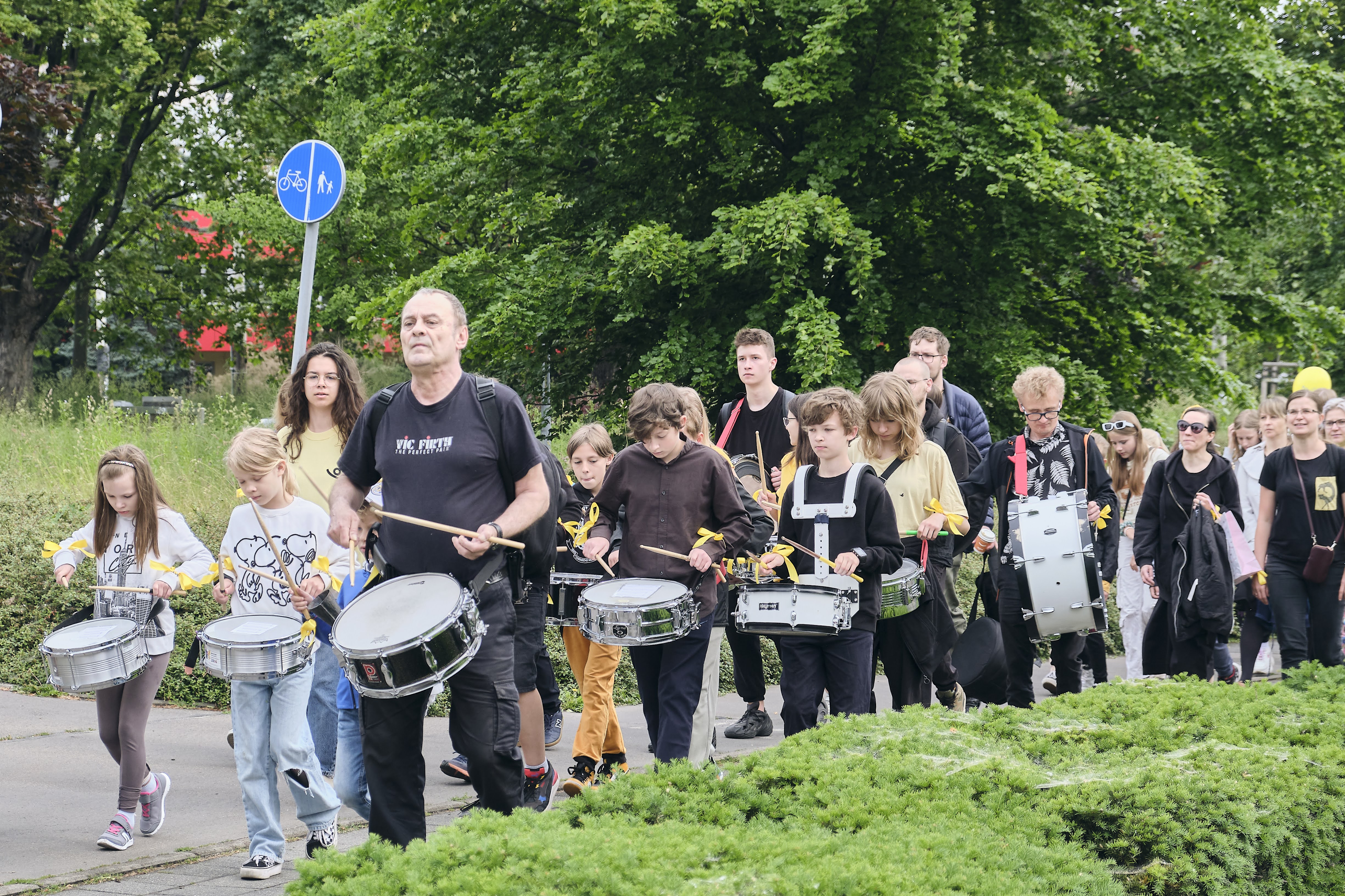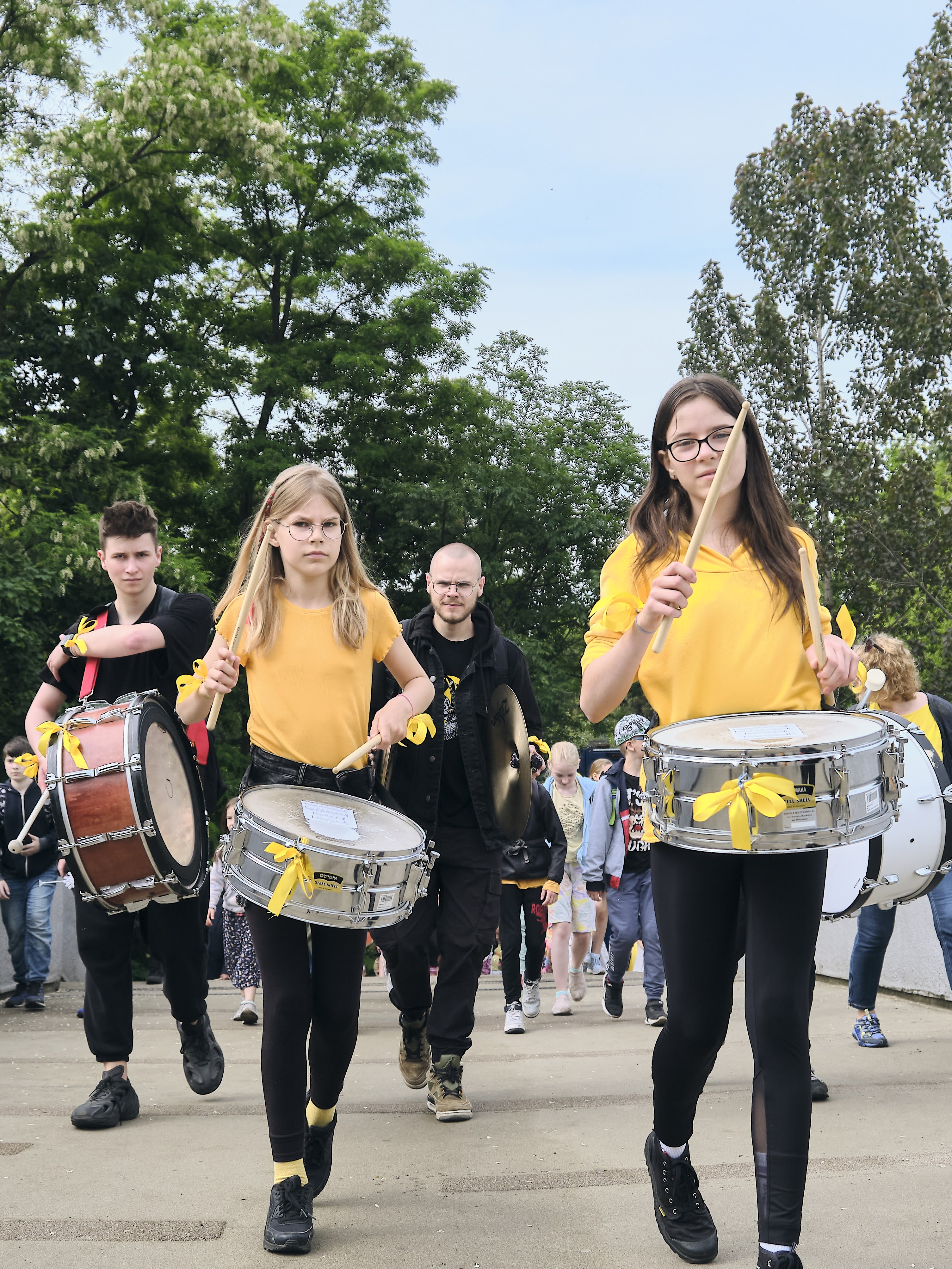 W dniu 6 czerwca 2023 uczniowie klas perkusji wraz z nauczycielami uczestniczyli w Żółtym Marszu Życia.