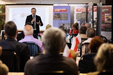 In connection with the 80th anniversary of the beginning of the journey of General Anders' army evacuated from the USSR, the Institute of National Remembrance has launched an international educational and commemorative project entitled “Trails of Hope. The Odyssey of Freedom”, which aims to commemorate the military effort of the Polish Armed Forces during World War II and the fate of civilians evacuated from the USSR with the Anders Army. South Africa is the first country to officially present the exposition. The official opening took place on April 26, 2022 at the "Freedom Park" in Pretoria. The event was attended by the President of the Institute of National Remembrance, Dr Karol Nawrocki, the Polish Ambassador to South Africa Andrzej Kanthak, the Lithuanian Ambassador to South Africa Dainius Junevičius, historians and employees of the museum, and invited guests. On April 27, 2022, the delegation visited the National Museum of Military History in Johannesburg. During the meeting, both institutions discussed cooperation and exchange of experiences in the field of research on the common history of both countries. On April 28, 2022, the President, Karol Nawrocki, officially presented the exhibition "Trails of Hope. The Odyssey of Freedom” at the Polish parish in Norwood in Johannesburg during the meeting with the local Polish community. Before the meeting in the church, Ambassador Andrzej Kanthak, IPN President Karol Nawrocki and Consul Michał Gierwatowski laid wreaths at the Katyn monument in Johannesburg.