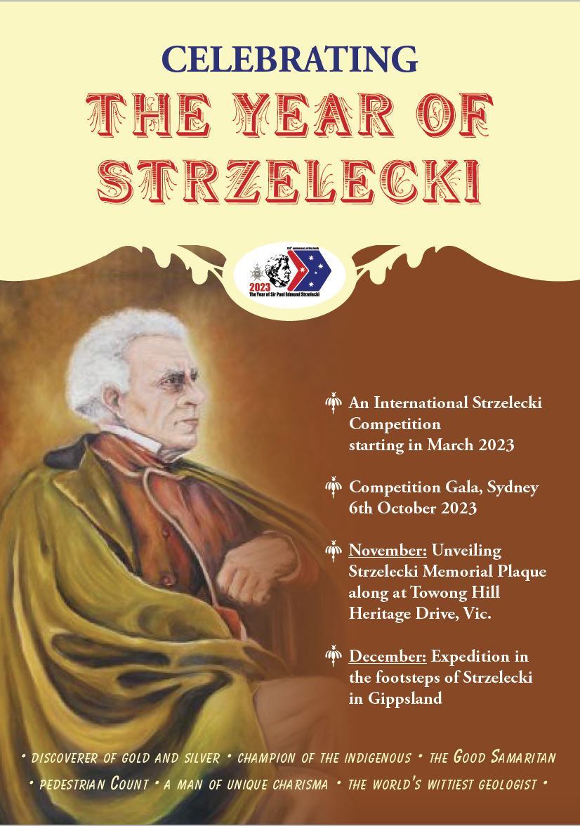The Sejm of the Republic of Poland proclaimed 2023 as the Year of Strzelecki, in honour of the 150th anniversary of his passing. Links to Competition Guidelines, Competition Entry Form, and recommended bibliography are attached below.