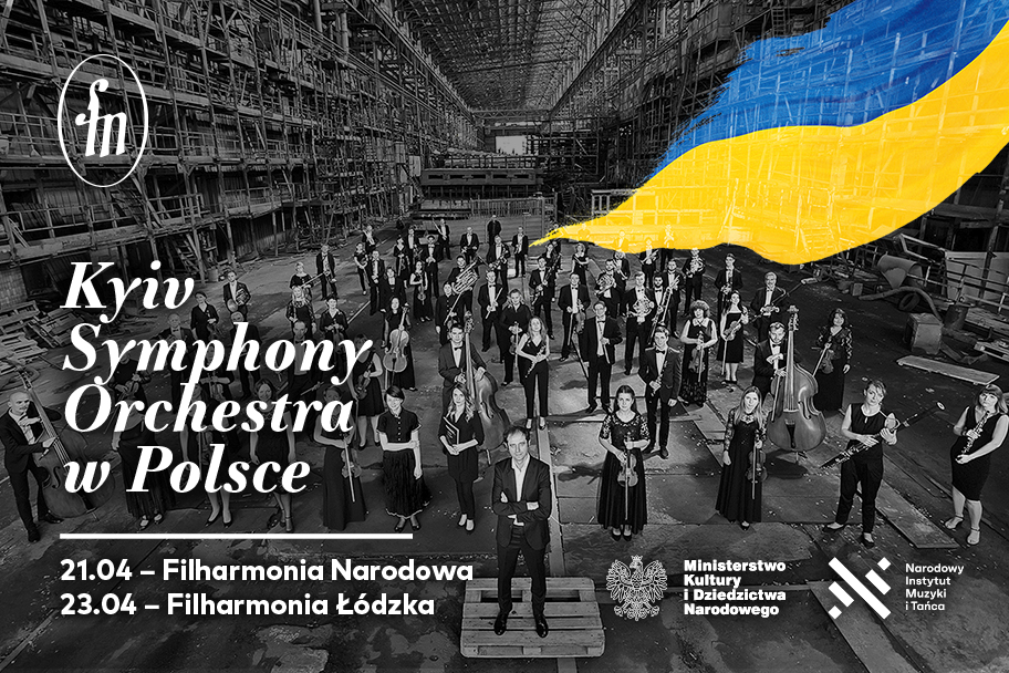 In Poland, the Kyiv Symphony Orchestra will perform two concerts: in Warsaw on 21 April and in Łódź on 23 April. As this is the ensemble’s first performance since the war began, it will be preceded by several days of rehearsals in the Concert Hall in ul. Jasna and in the headquarters of the Polish Radio. The musicians’ visit to Poland is organised by the Warsaw Philharmonic and the National Institute of Music and Dance, and financed from the funds of the Minister of Culture and National Heritage.
