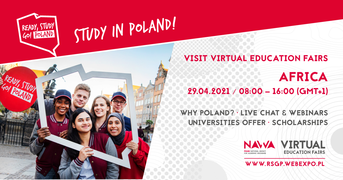 The Polish National Agency for Academic Exchange (NAWA) would like to invite high school and university students to a virtual education fairs devoted to the prospects of studying in Poland at www.rsgp.webexpo.pl on Thursday, April 29, from 8:00 to 16:00 (GMT + 1).