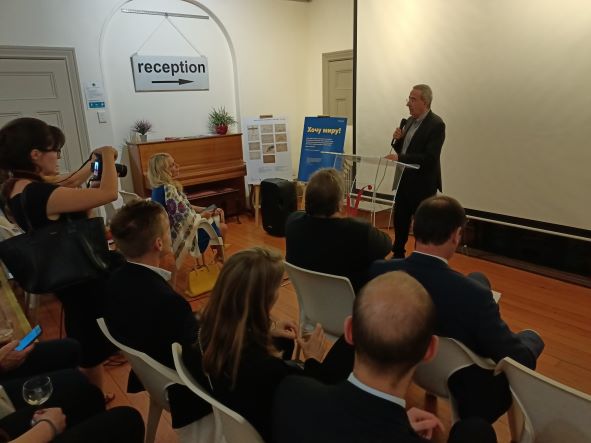 Theo Miltiadous (Alliance Française), Arnaud Roux (Chargé d'affaires of the Embassy of France), Liubov Abravitiva (Ambassador of Ukraine) and Jarosław Spyra (Head of the Political and Economic Department of the Polish Embassy) gave occasional speeches during the event. The speeches referred to the tragic events in Ukraine, the suffering of the Ukrainian nation, and also expressed support and international solidarity with Ukraine fighting for the defence of the country's freedom and territorial integrity.