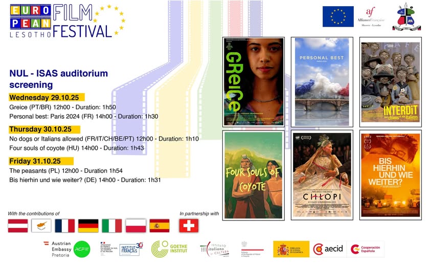 The European Film Festival in Lesotho took place from October 15 to November 10, 2025. 18 European and local films were presented during the Festival.