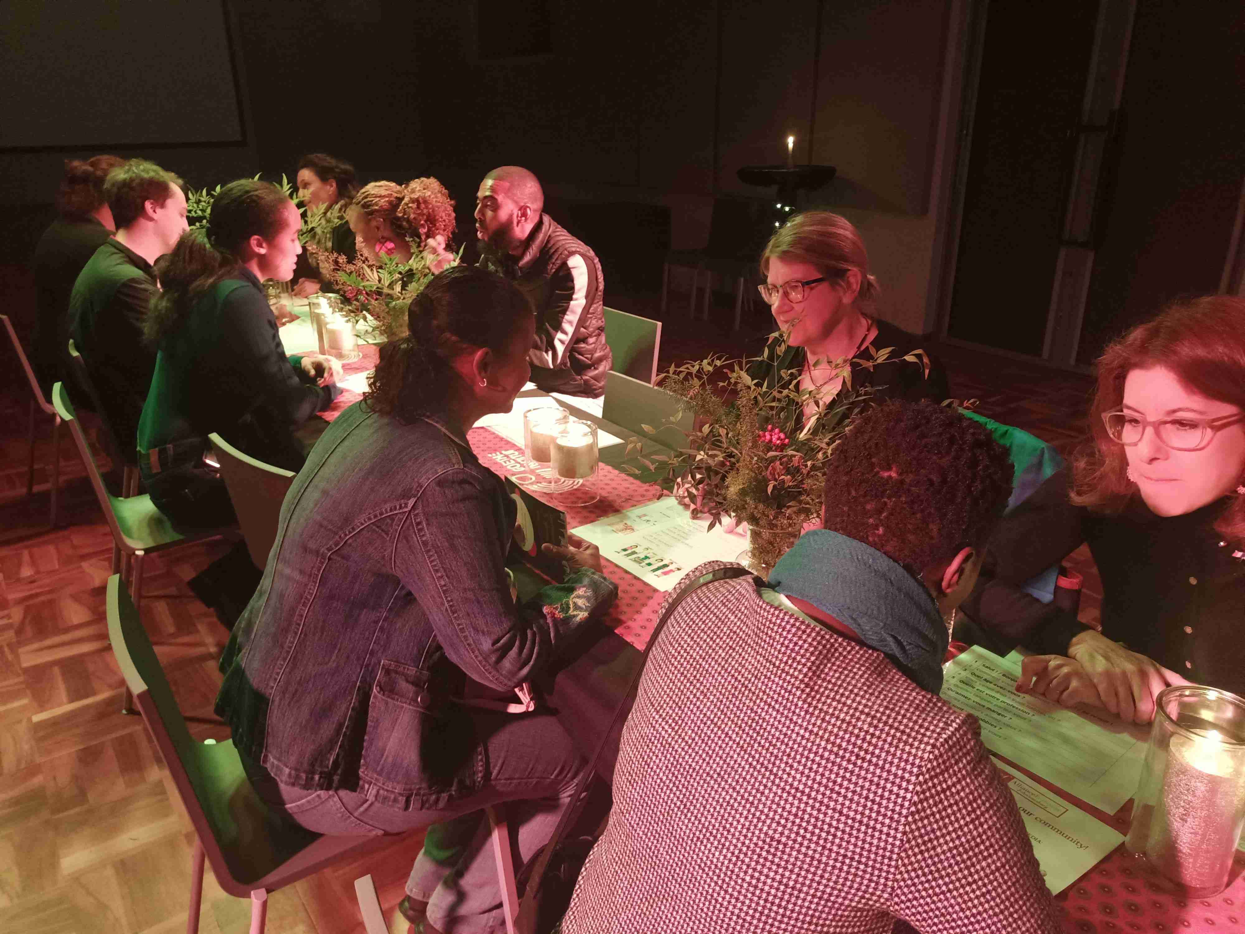 “Speak Dating” is an informal two-minute speed dating format, where people quickly learn phrases in various languages from native speakers. The event promotes cultural exchange without the pressure of a classroom. Participants learn phrases in each available language on the following topics: greetings, colors, flags, food, hobbies, languages, music, numbers, and professions. After two minutes of the session, a bell rings, and participants move on to the next booth and begin learning a new language. Because most participants are beginners and only have the opportunity to experience a language for two minutes, they typically only manage to learn greetings in this limited time.