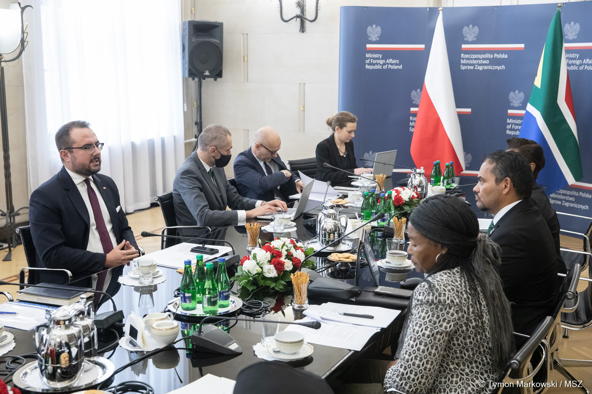 - South Africa is one of the most important political and economic partners of Poland in Africa. We appreciate the good dynamics of the bilateral relations established almost exactly 30 years ago and we are working on further strengthening the cooperation between our countries. This will benefit both our nations, said Paweł Jabłoński, Undersecretary of State at the Ministry of Foreign Affairs, during today's political consultations with Alvin Botes, South Africa's deputy foreign minister.