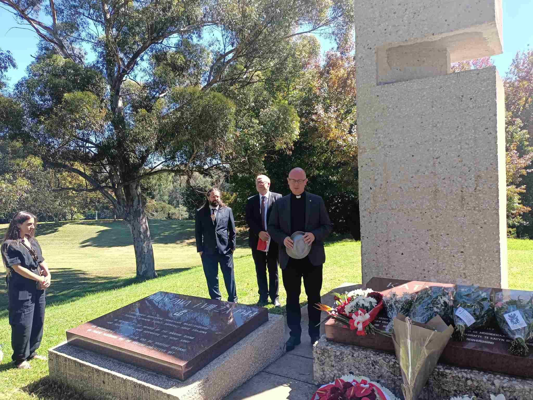 The wreaths were laid at the monument by Ambassador Adam Burakowski and Consul Robert Rusiecki, as well as representatives of the Siberian Association in South Africa, the Polish Association in Cape Town, the Polish Association in Johannesburg, the Foundation of Katyn Families of Jewish Origin, the Polish Association of the Vaal Triangle and the Polish diaspora. Ambassador Adam Burakowski delivered a commemorative speech in which he presented the background to the tragic events. Stefan Szewczuk, president of the Association of Siberians in South Africa, also spoke. Fr. Radosław Szymoniak said a prayer for the murdered and also referred to the Katyn Massacre.