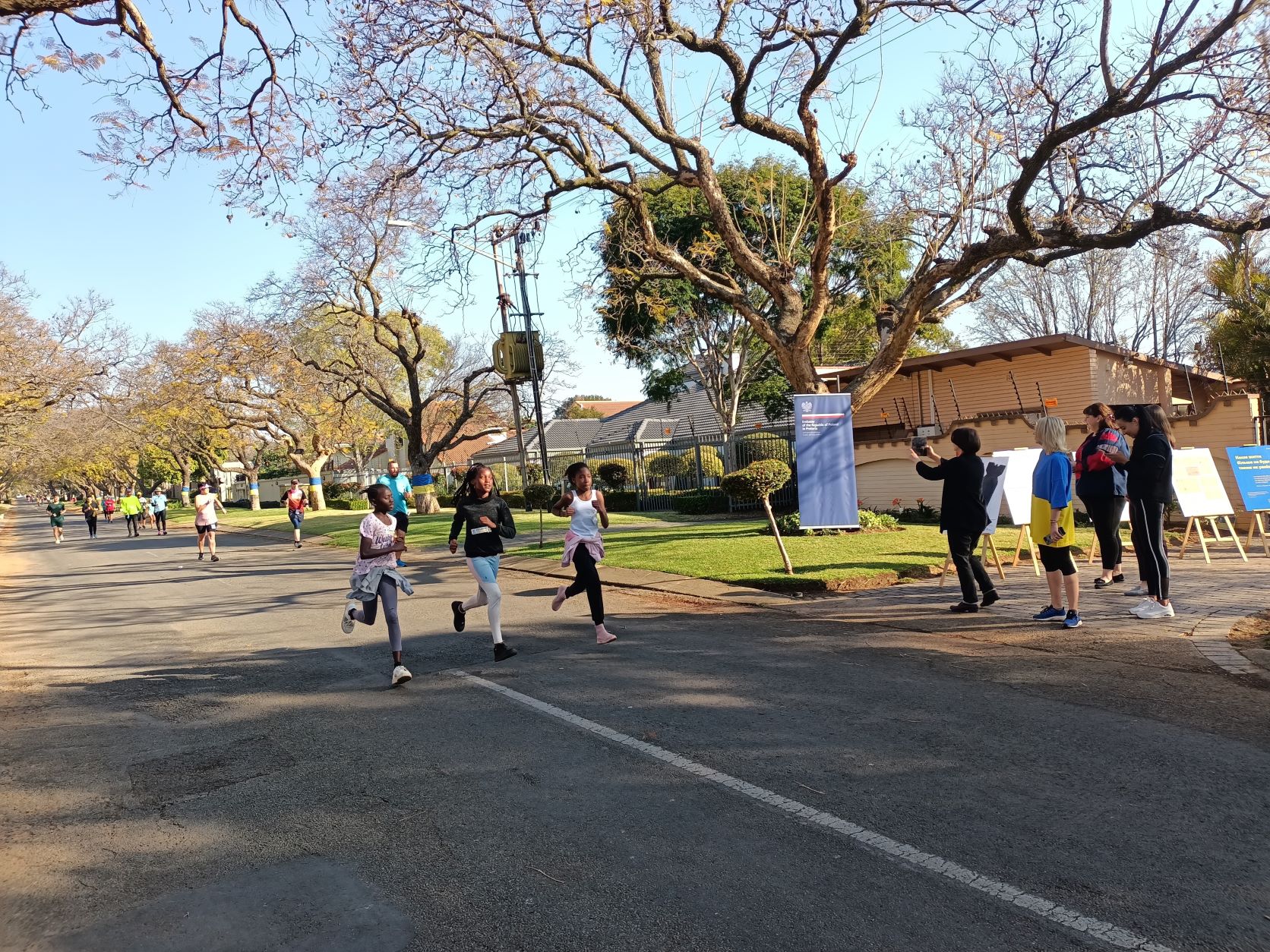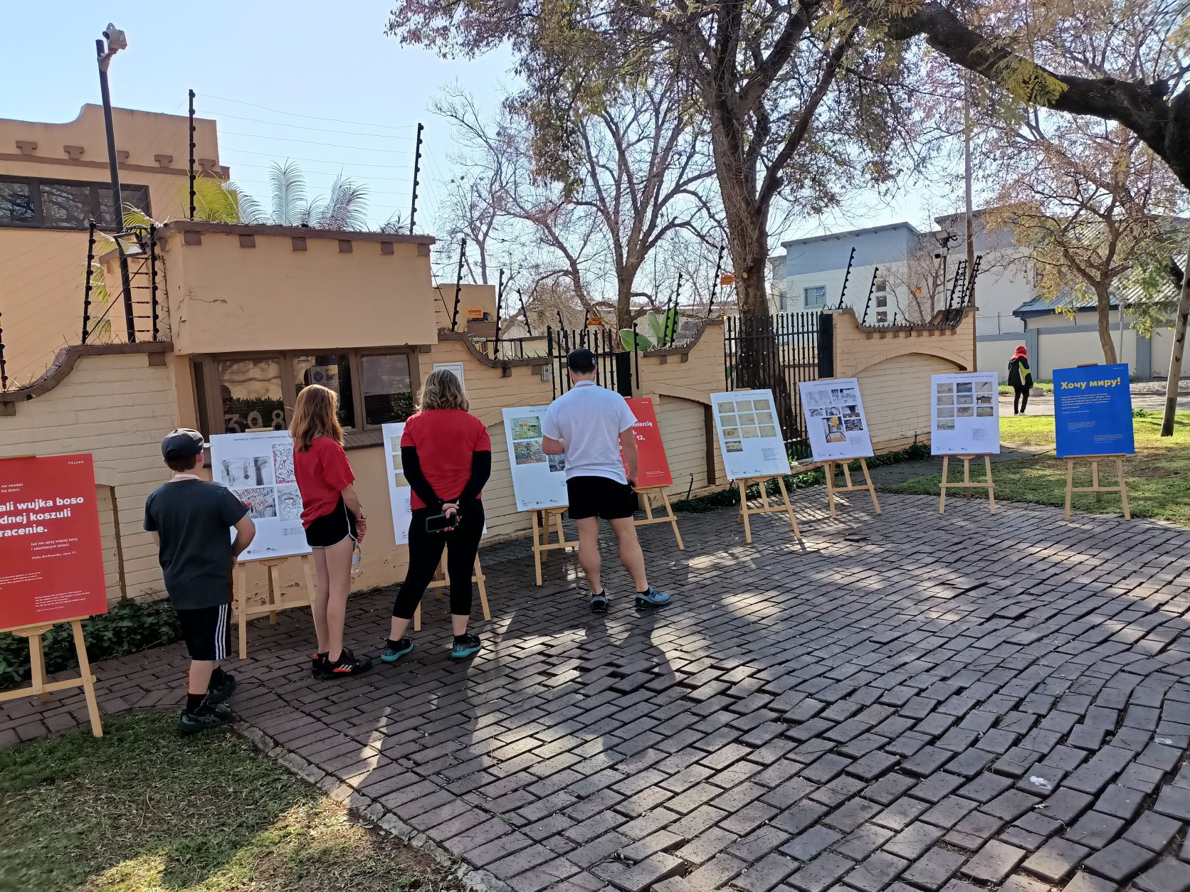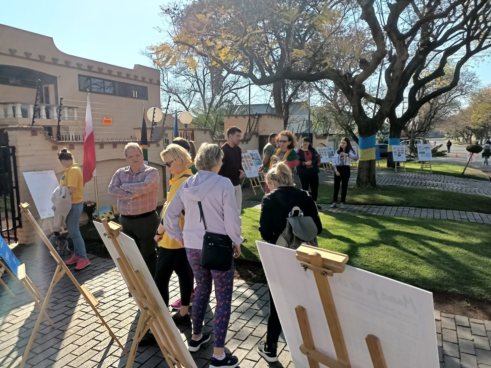 The exhibition was presented during the celebration of Ukraine's Independence Day, as part of the "Race for Peace" street run organized on this occasion in the centre of Pretoria by the Ukrainian Embassy in Pretoria. The participants of the event could see the exhibition, read the comments of the authors of the project and learn more about the ongoing war. About 500 people participated in the event. The visitors unanimously emphasized that each of the works is a clear idea, each carries an extremely strong message, is a poignant childhood testimony of the war, and will also going to be remembered for a long time.