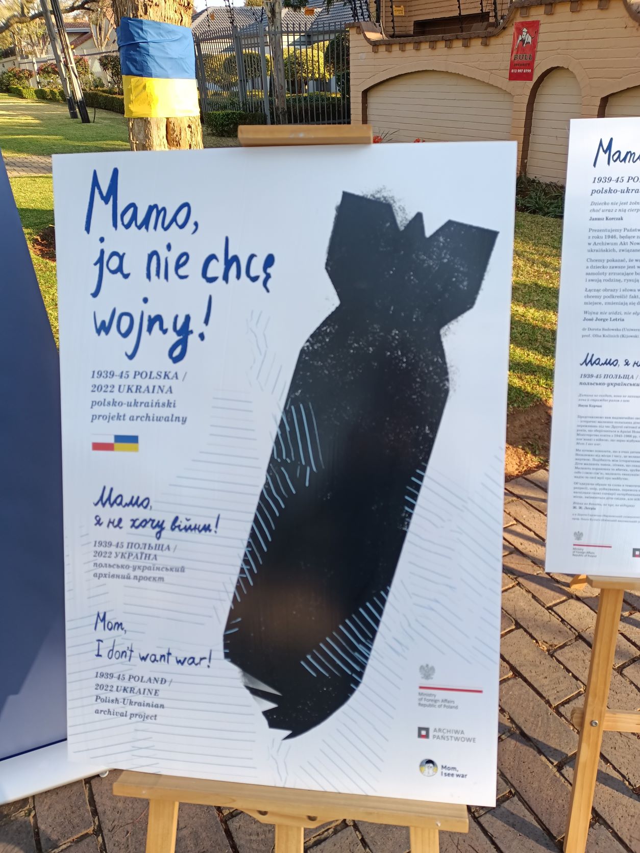 The Embassy of the Republic of Poland in Pretoria, in cooperation with the Embassy of Ukraine in Pretoria, organized on August 27, 2022 an exhibition entitled "Mom I don't want war" prepared as part of the Polish-Ukrainian project of the State Archives and Mom I See a War Initiative.