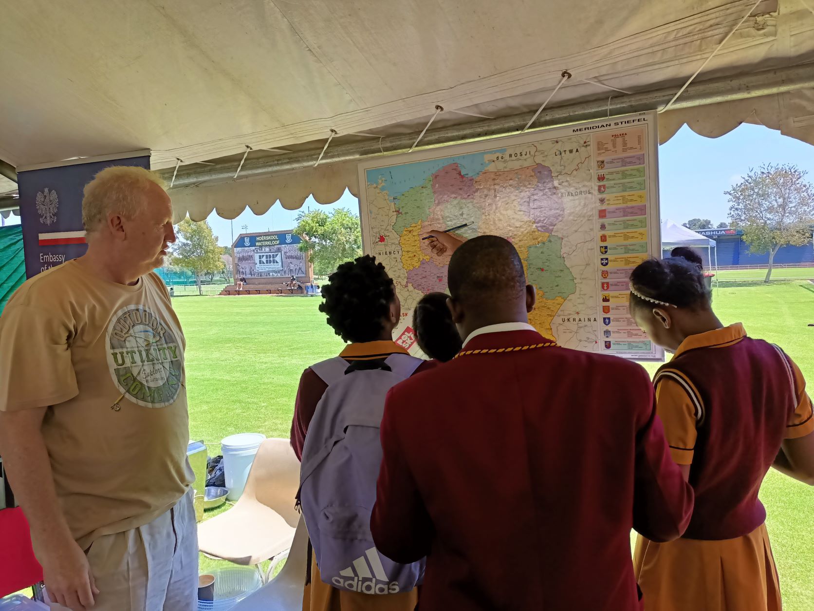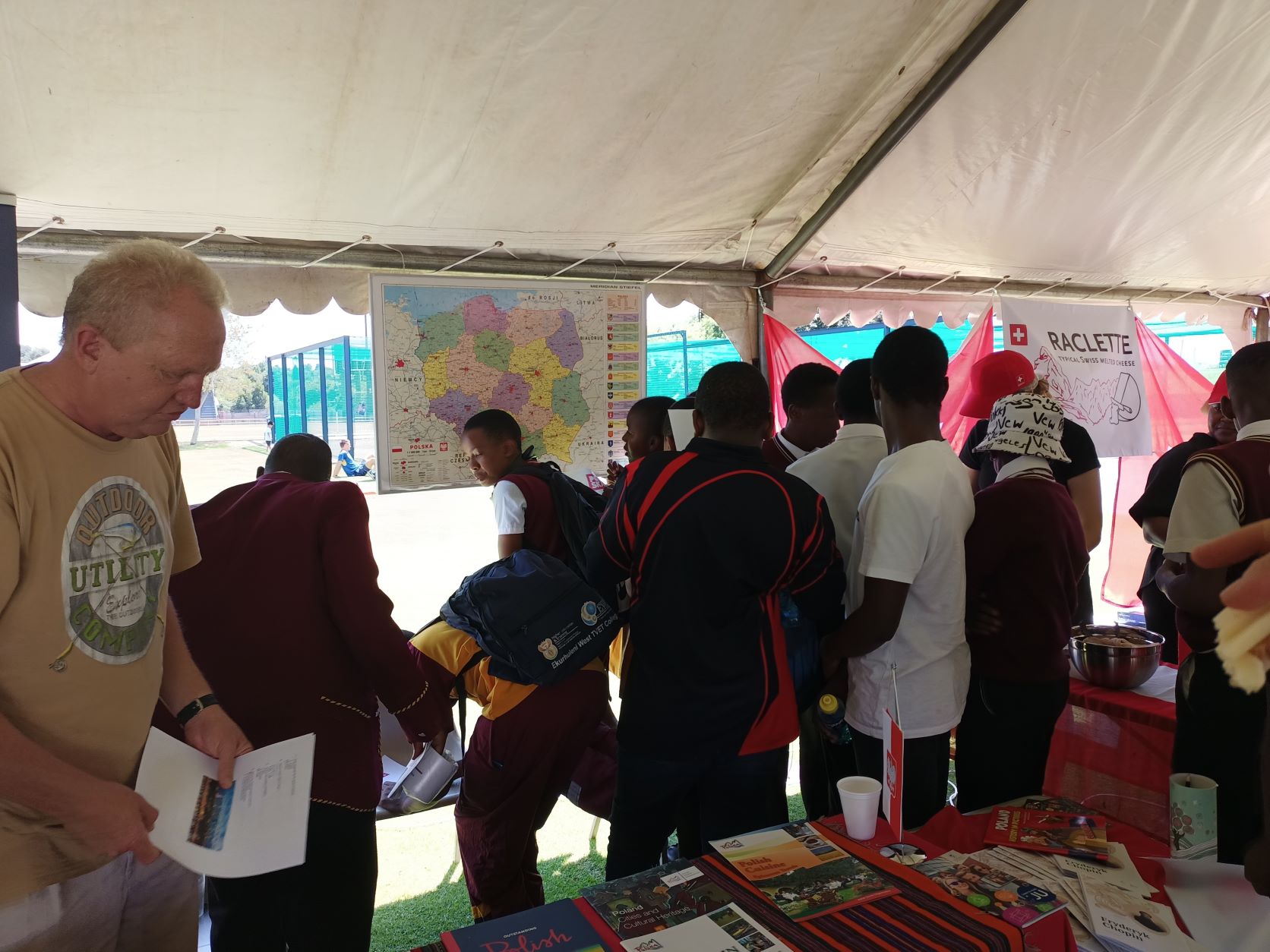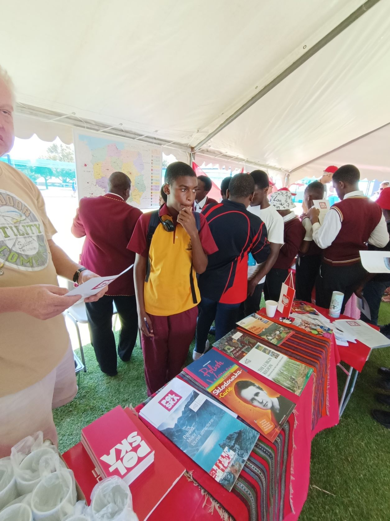 The Embassy of the Republic of Poland in Pretoria presented two exhibitions: "Mom, I don't want war" and an exhibition devoted to the life and work of Fryderyk Chopin. At the Polish stand, the participants of the event could learn about the culture, rich tradition and geography of our country, as well as beautiful architecture, numerous monuments and interesting places worth seeing. Embassy employees also provided information on the Polish educational offer and available scholarship programs, including the Stefan Banach Scholarship Program. Polish dumplings, faworki and gingerbread aroused great interest and brought the participants closer to the traditional Polish cuisine, as well as Polish culinary symbols. The Embassy also organized a quiz on knowledge about Poland, which was very popular. Participants who answered all the questions correctly received prizes: T-shirts and mugs with the embassy logo, books "About Poland" and Nie-mapy.