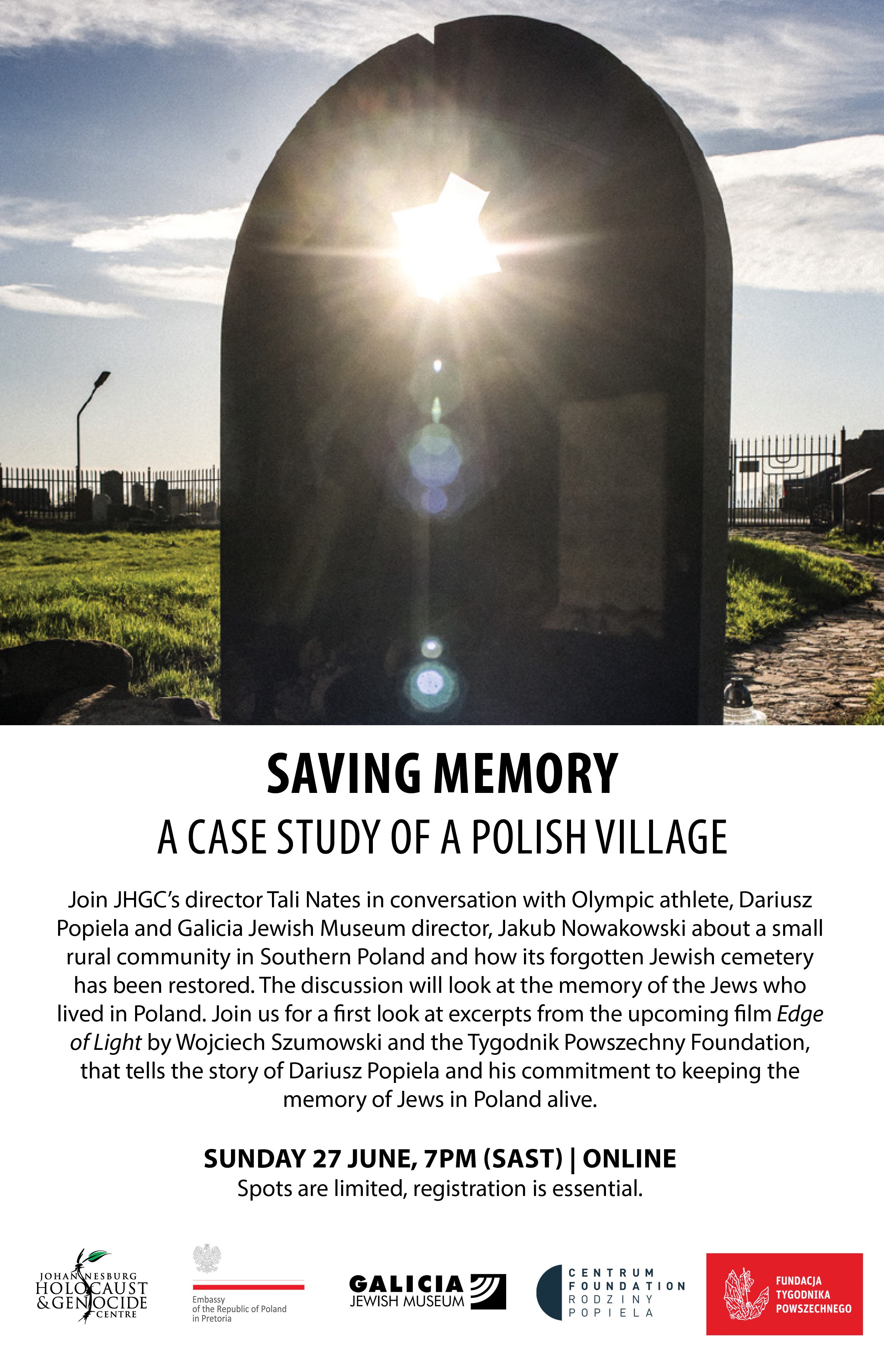 The Johannesburg Holocaust & Genocide Centre organized a webinar with the participation of Jakub Nowakowski, director of the Galicia Jewish Museum in Krakow, and Dariusz Popiela, president of the “Centrum Foundation Rodziny Popiela” and a social activist.