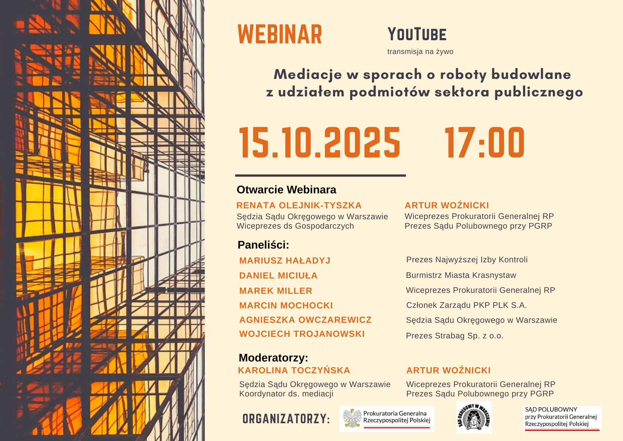 WEBINAR – Mediacje w sporach o roboty budowlane z udziałem podmiotów sektora publicznego