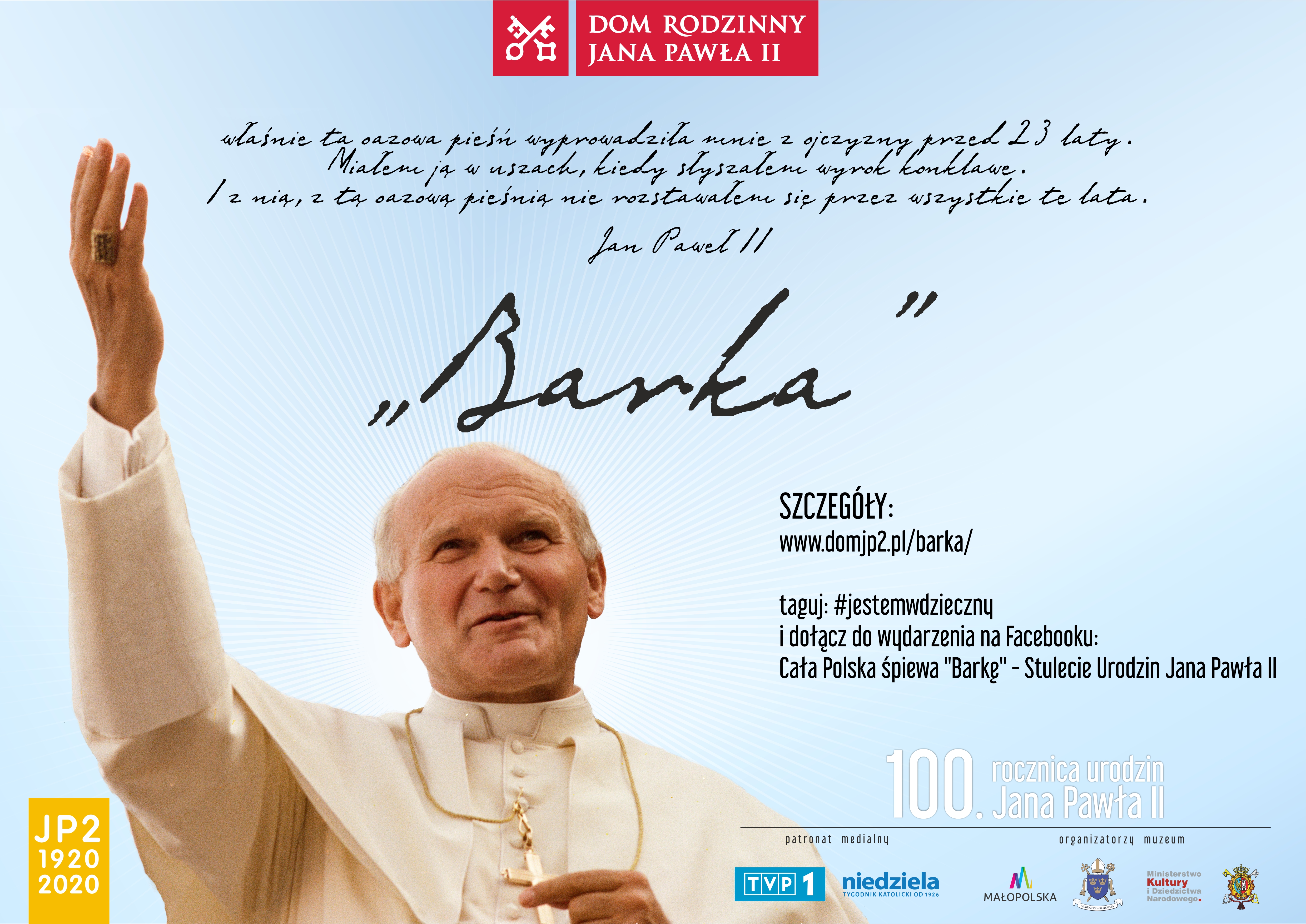 Muzeum zachęca do tego, by podzielić się swoimi aranżacjami, niezależnie czy będziecie „Barkę” śpiewać, tańczyć, grać czy po prostu recytować. Przez cały miesiąc można to zrobić na stronie wydarzenia https://www.facebook.com/events/742408482845528, a także oznaczając fanpage (@domjp2) lub #jestemwdzieczny w waszych Facebookowych profilach.