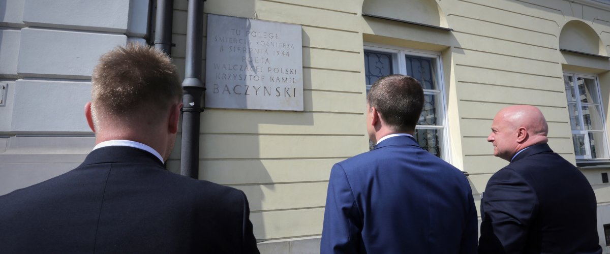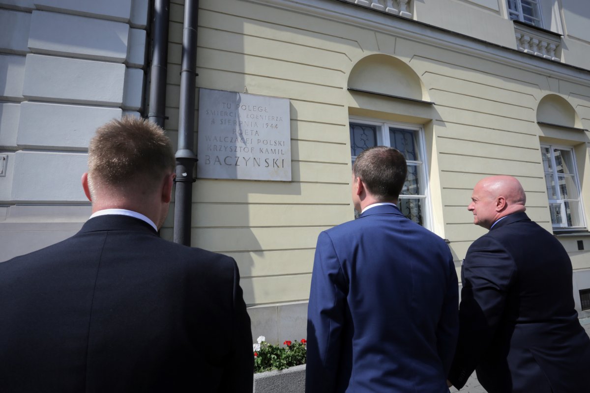 Delegacja MSiT z ministrem Witoldem Bańką oraz Sekretarzem Stanu Jarosławem Stawiarskim złożyła kwiaty pod tablicą upamiętniającą Krzysztofa Kamila Baczyńskiego