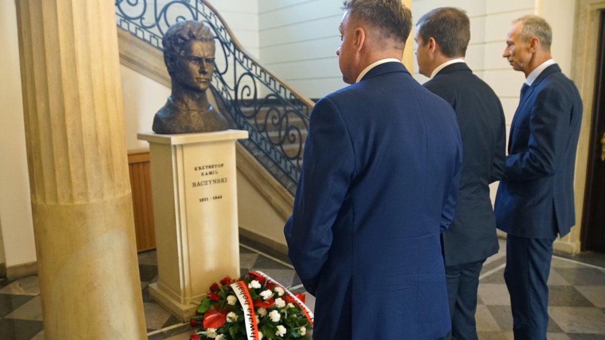 W 75. rocznicę tamtych wydarzeń Minister Witold Bańka, Podsekretarz Stanu Jan Widera oraz Dyrektor Generalny Dariusz Rogowski złożyli kwiaty pod tablicą upamiętniającą Krzysztofa Kamila Baczyńskiego. Poeta czasu wojny i żołnierz Armii Krajowej zginął 4 sierpnia 1944 roku w Pałacu Blanka (dzisiejszej siedzibie Ministerstwa Sportu i Turystyki) zabity przez niemieckiego snajpera, który najprawdopodobniej strzelał z gmachu Teatru Wielkiego.