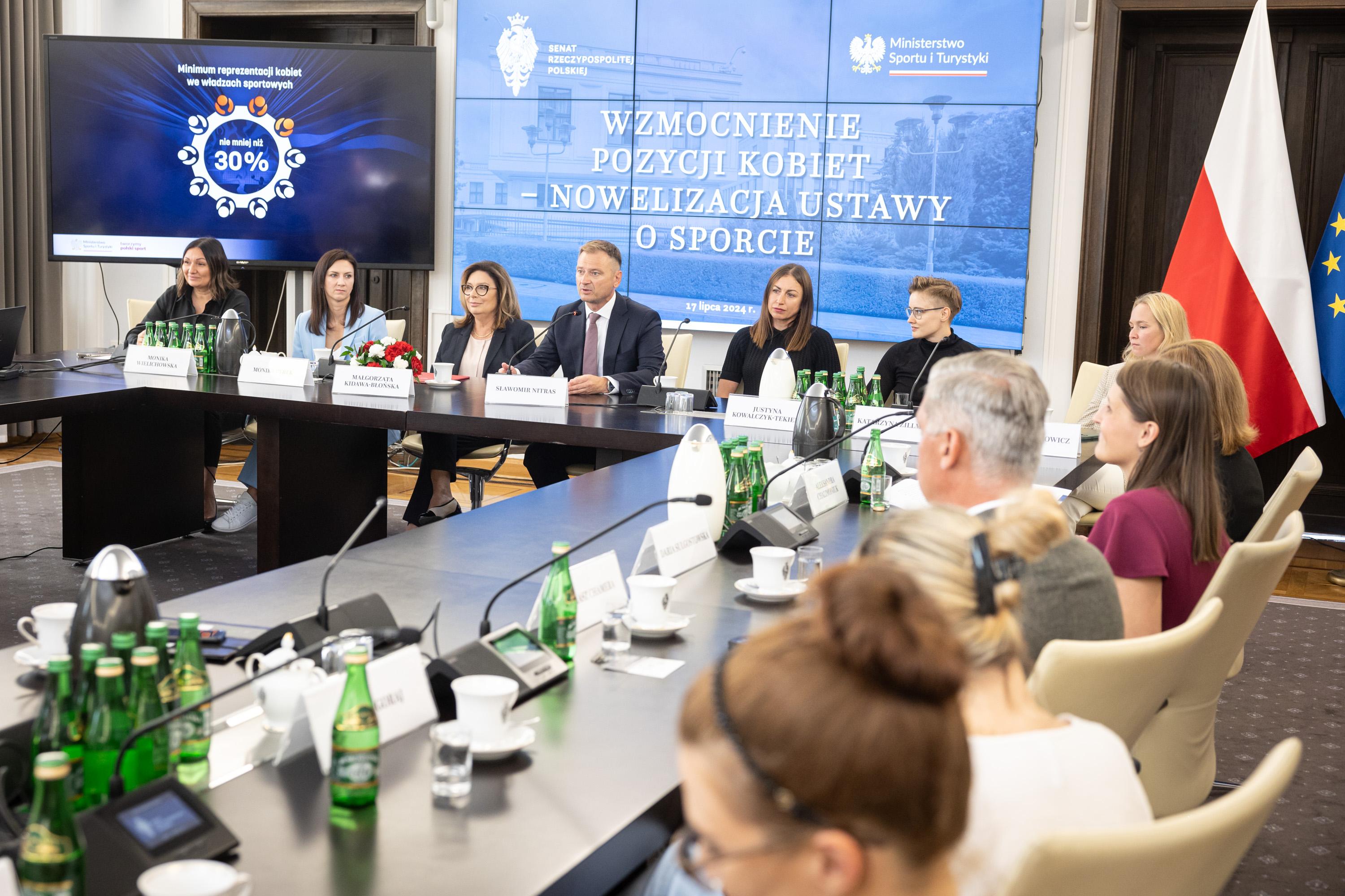 W środę w Senacie odbyła się konferencja na temat projektu nowelizacji ustawy o sporcie. Jednym z jego głównym celów jest wzmocnienie roli kobiet w polskim sporcie. Konferencję otworzyli pani Marszałek Senatu RP Małgorzata Kidawa-Błońska i Minister Sportu i Turystyki Sławomir Nitras. W debacie w Senacie uczestniczyli przedstawiciele polskiego parlamentu, utytułowane polskie zawodniczki oraz reprezentanci władz związków sportowych.