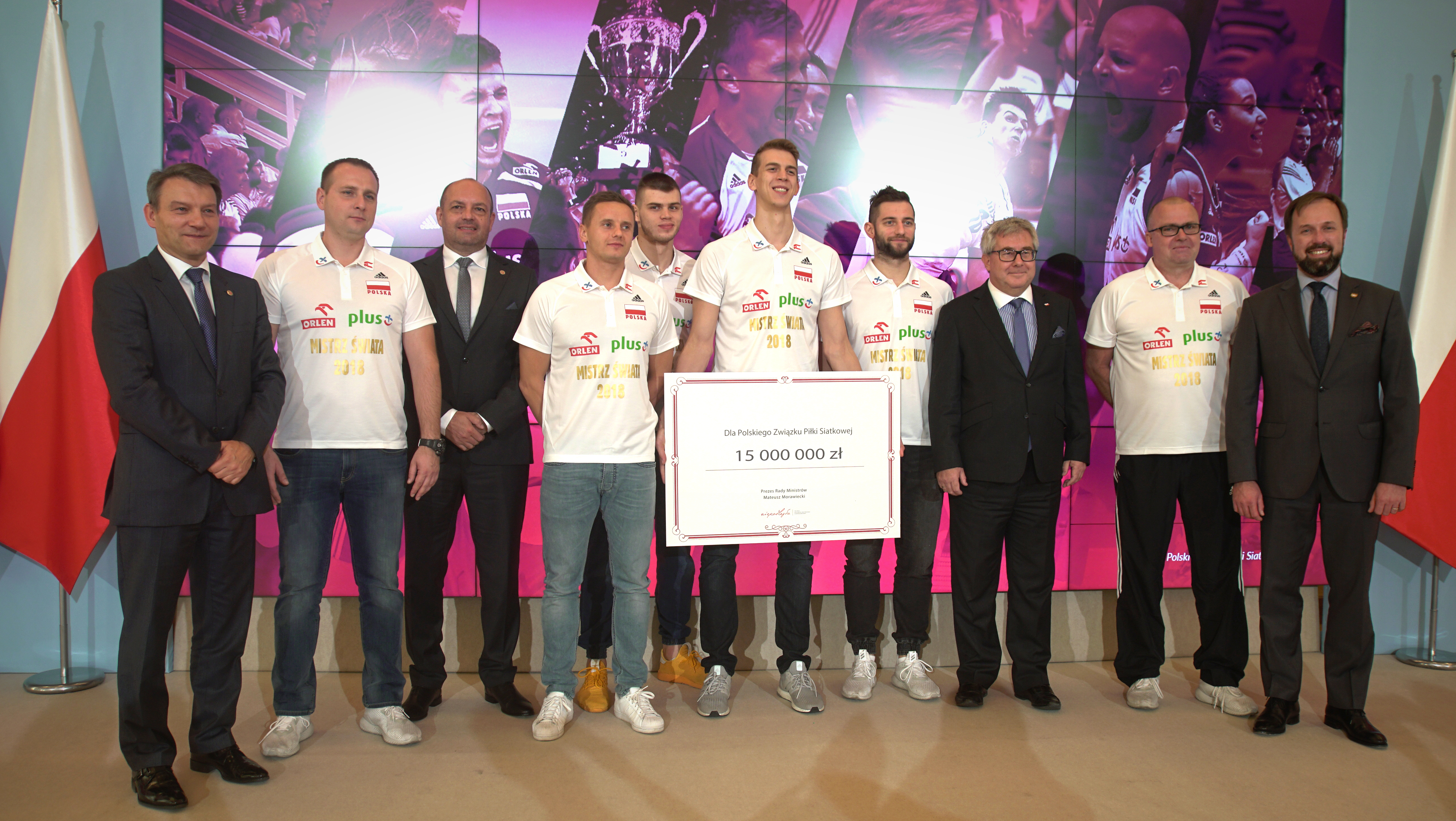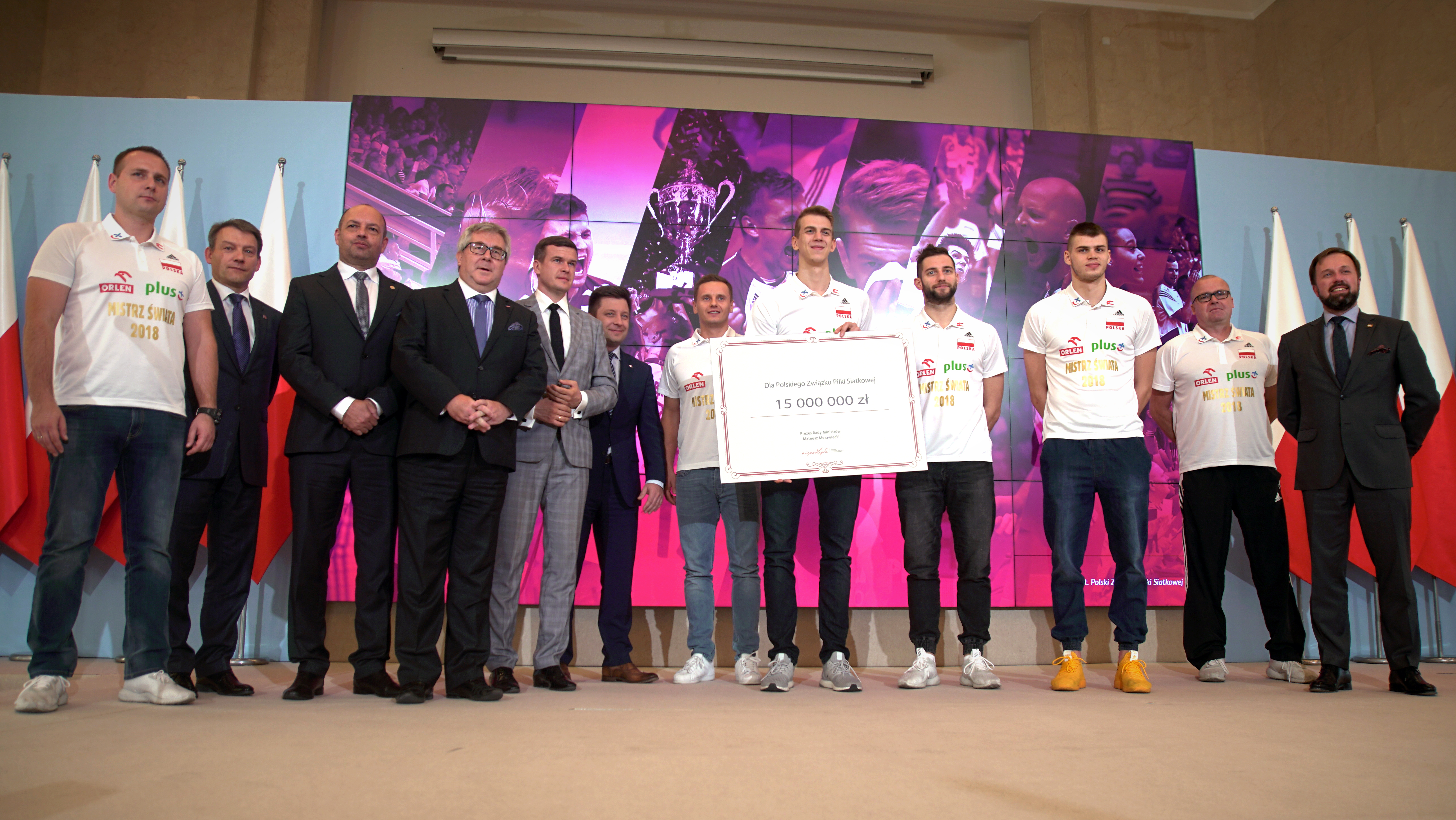 - Za pozytywne emocje dla milionów Polaków, energię oraz prezent na stulecie odzyskania niepodległości, premier Mateusz Morawiecki podjął decyzję o przeznaczeniu dodatkowego wsparcia w wysokości 15 mln zł dla Polskiego Związku Piłki Siatkowej. Część tej kwoty zostanie przeznaczona na nagrody dla zawodników, sztabów, a część na szeroko pojęty rozwój siatkówki – powiedział podczas konferencji Szef Kancelarii Prezesa Rady Ministrów Michał Dworczyk.