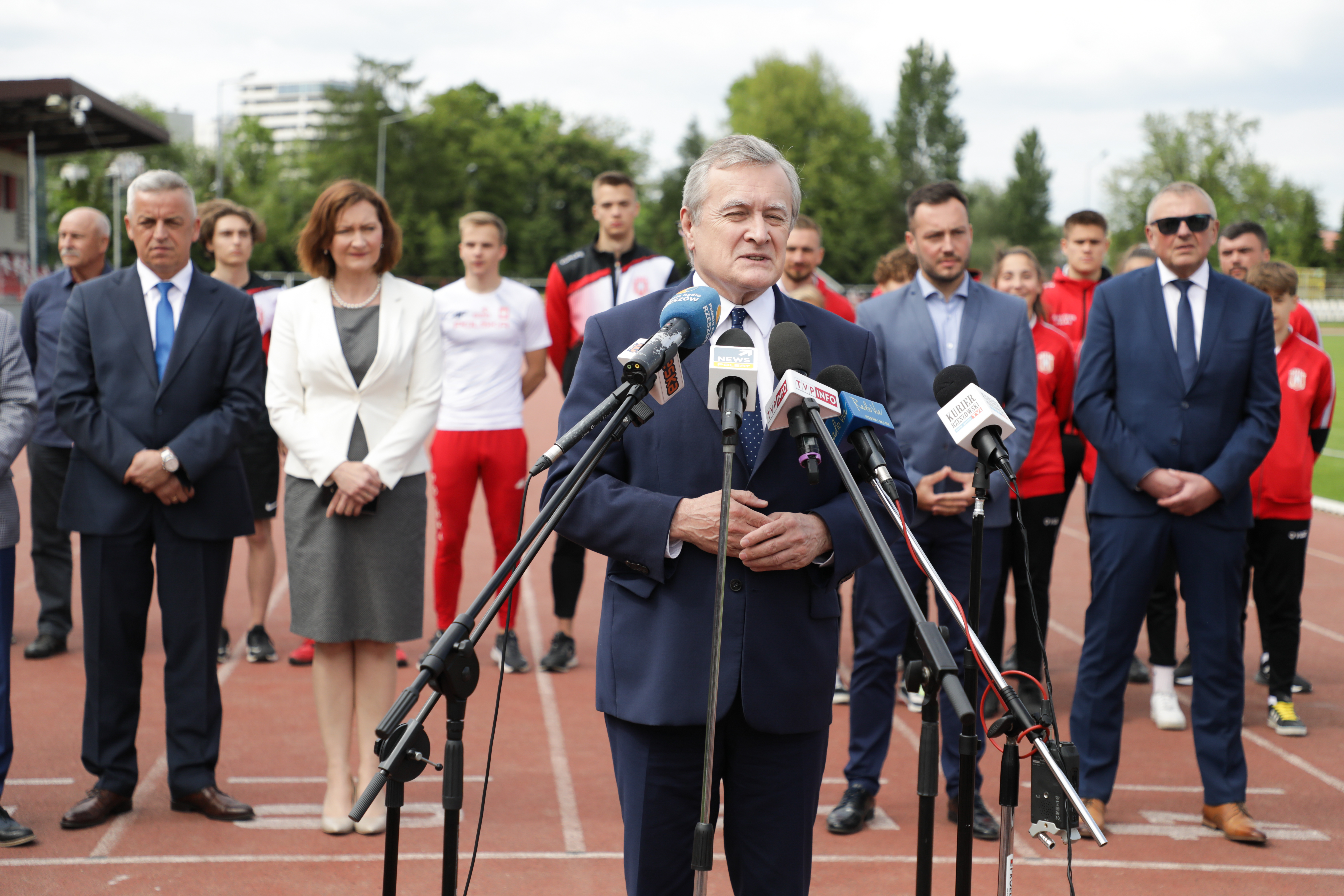W konferencji prasowej wzięli również udział m.in.: wojewoda podkarpacki Ewa Leniart, posłowie na Sejm RP, przedstawiciele władz samorządowych, sportowcy, trenerzy oraz uczniowie szkoły mistrzostwa sportowego.